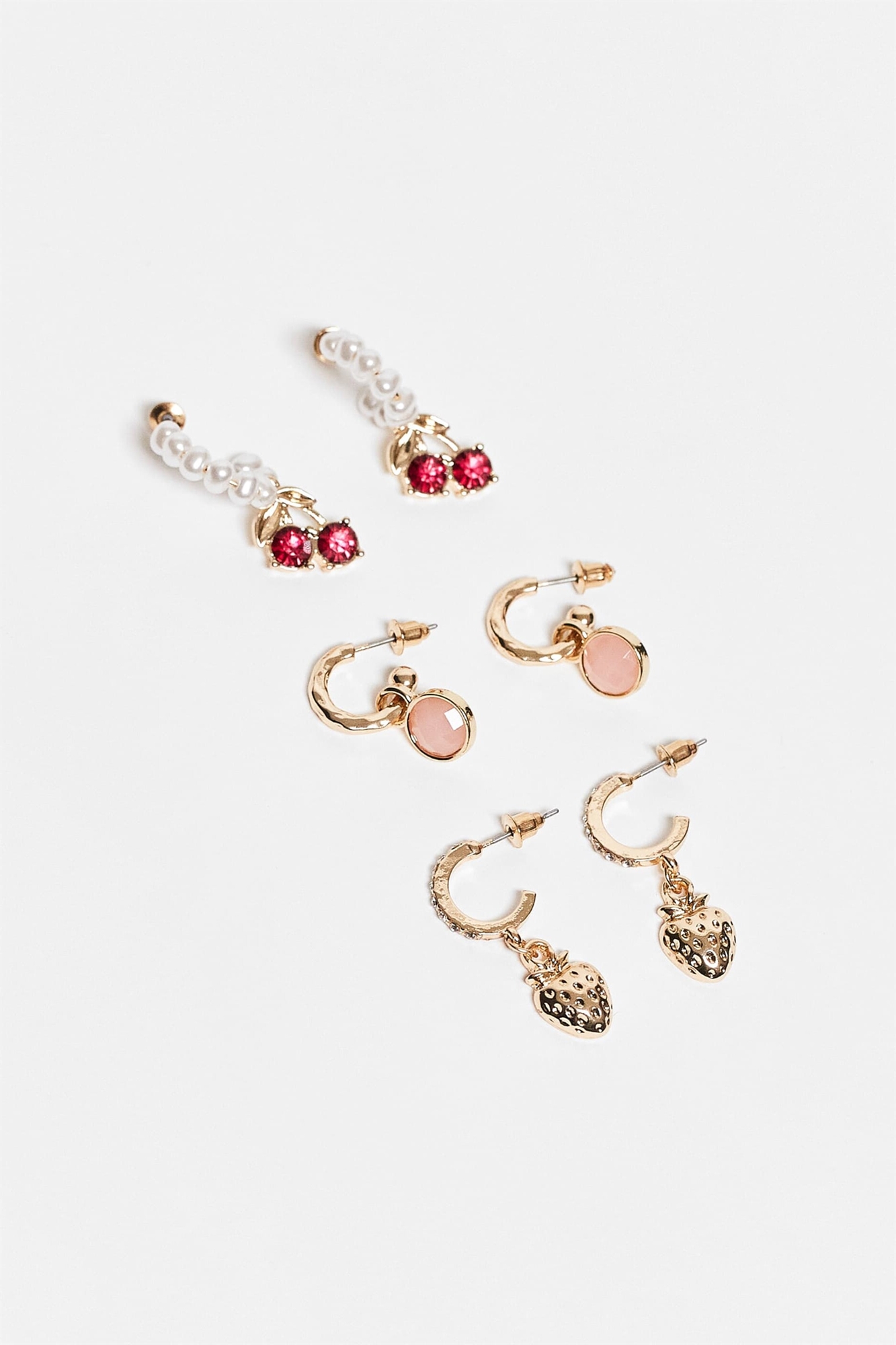 Набор из 3-х розовых сережек-колец с искусственными жемчужинами