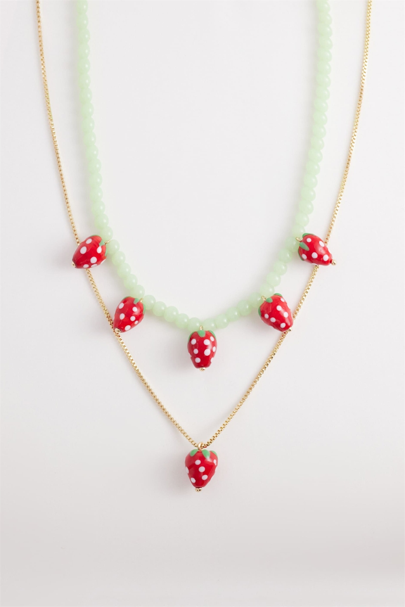 Ожерелье с подвесками в виде клубники из стеклянных бусин