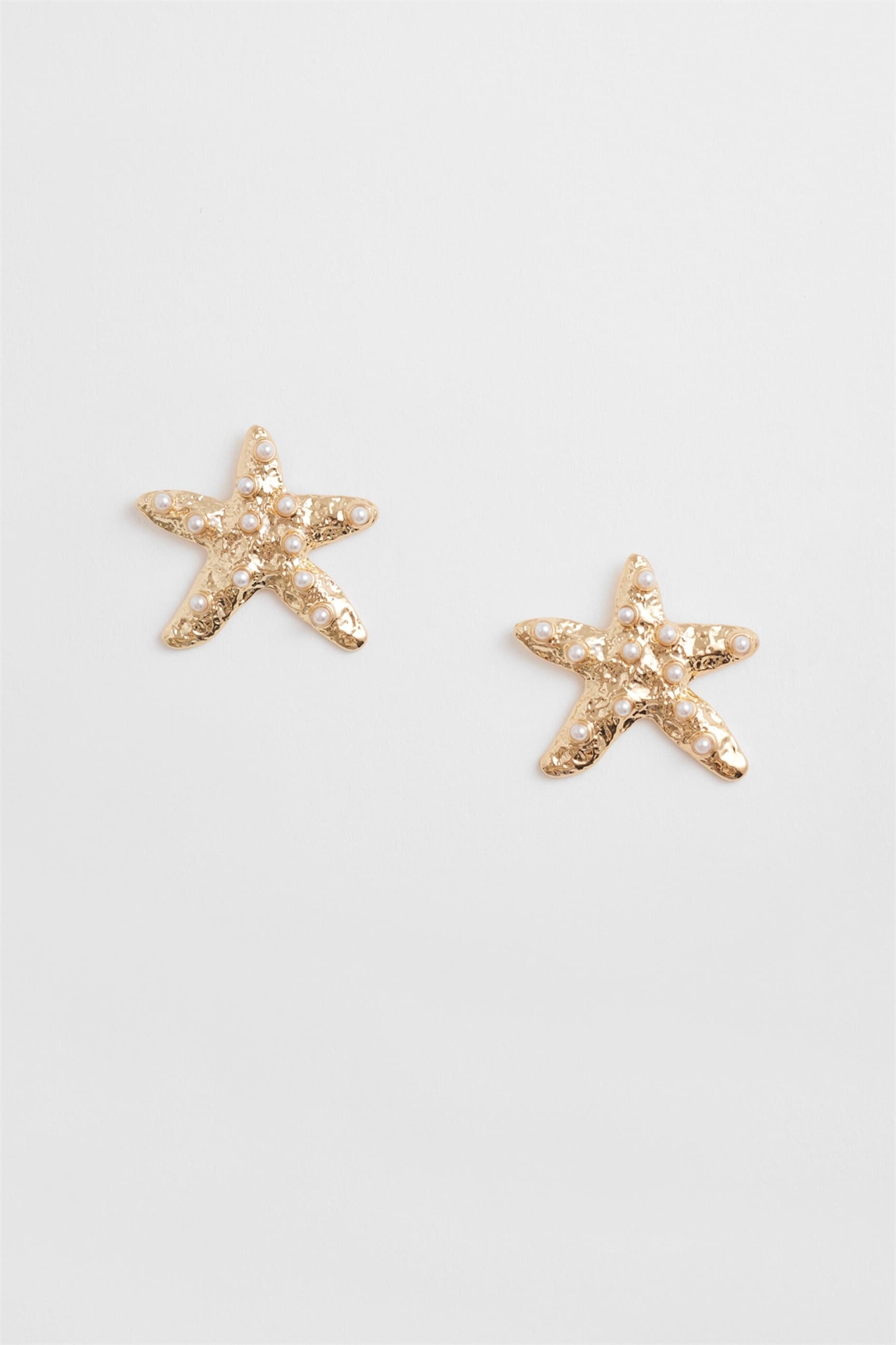 Сережки-гвоздики в виде морских звезд с текстурированными искусственными жемчужинами