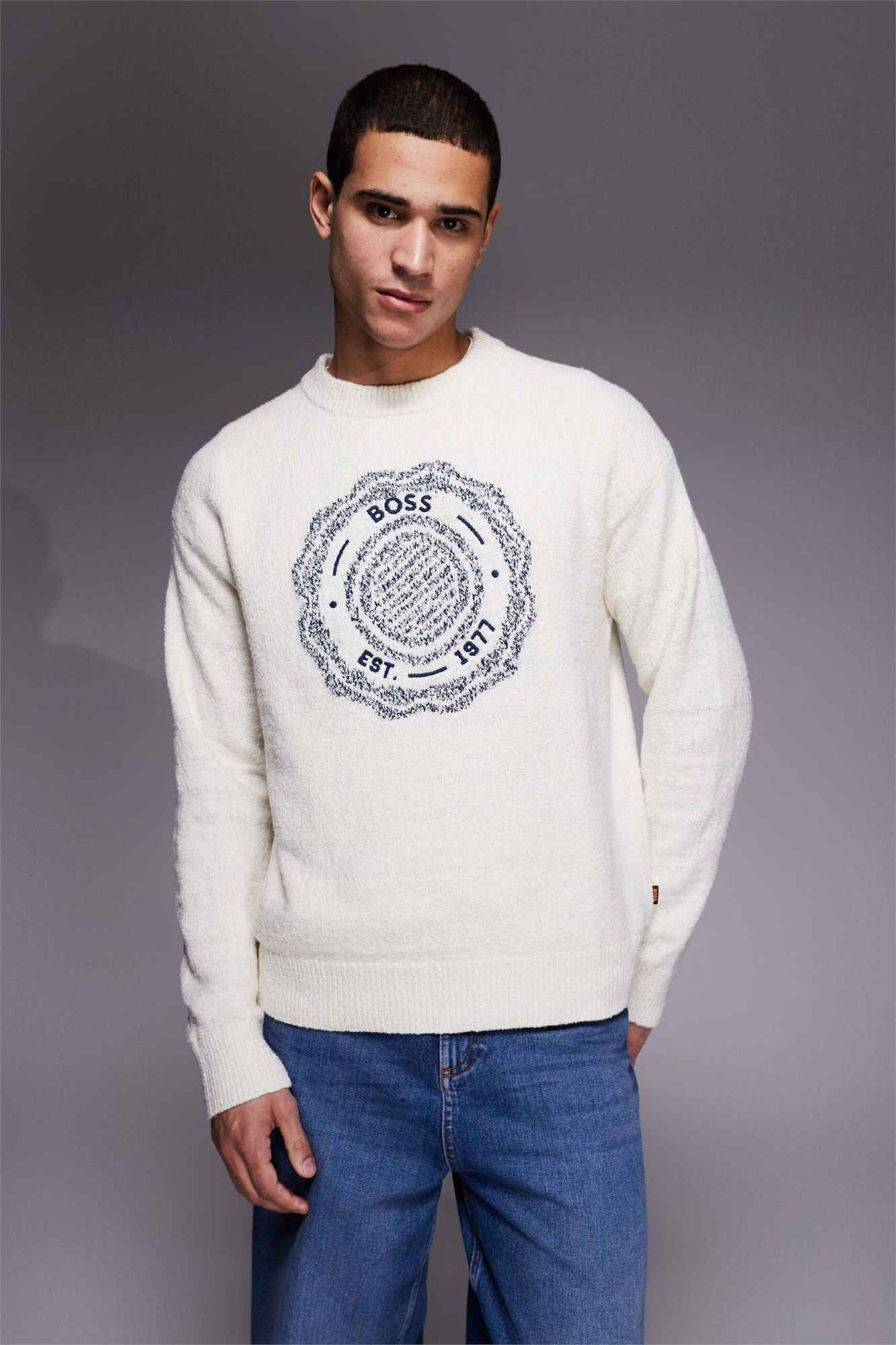 Свитер с принтом на груди и круглым вырезом от Kerbert