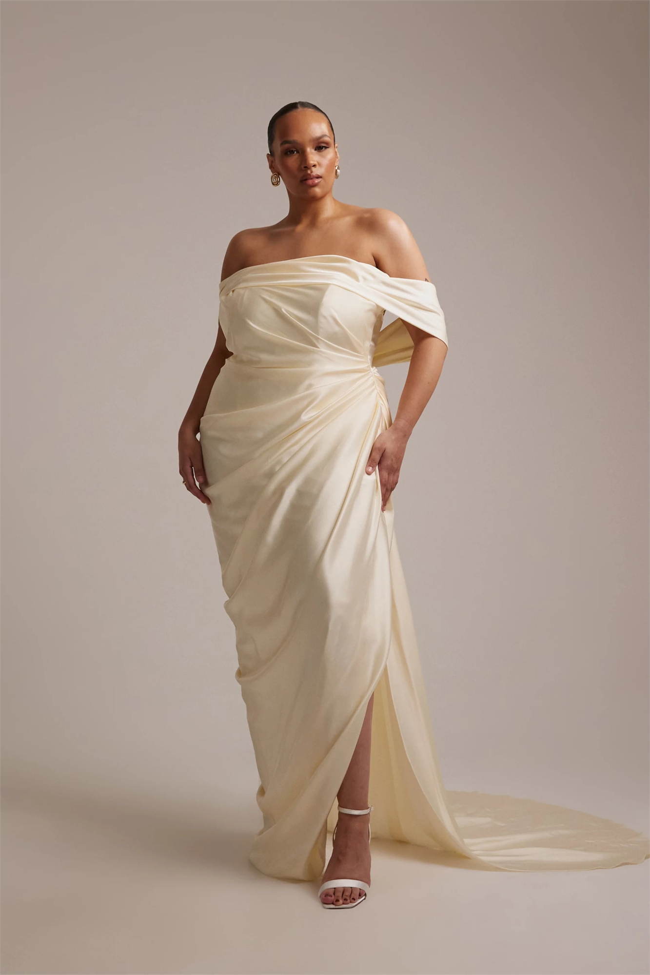 ASOS DESIGN: свадебное платье макси с драпировкой, открытыми плечами и завязками на спине для полных