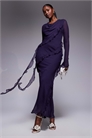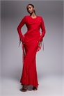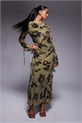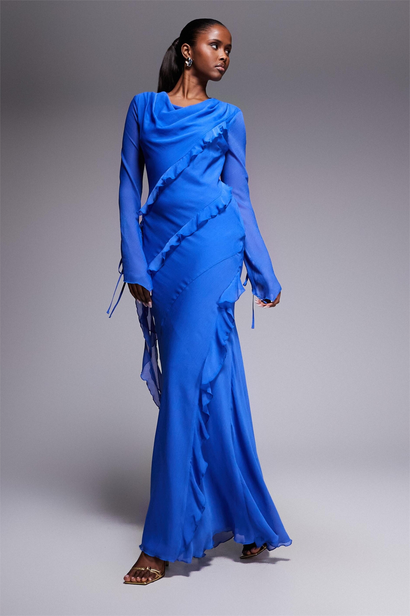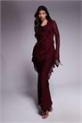 Макси-платье из шифона с высоким воротником-капюшоном и оборками