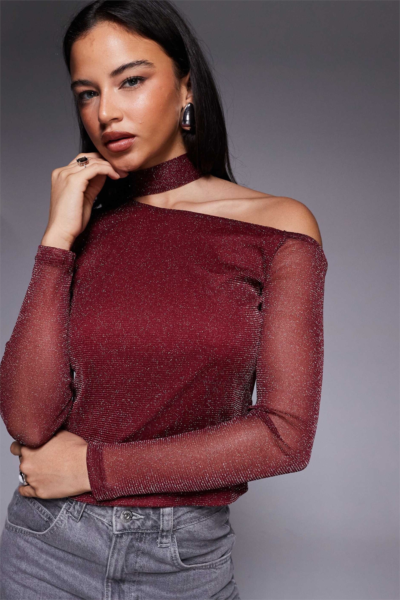 Топ с одним плечом из сетчатой ткани с блестками