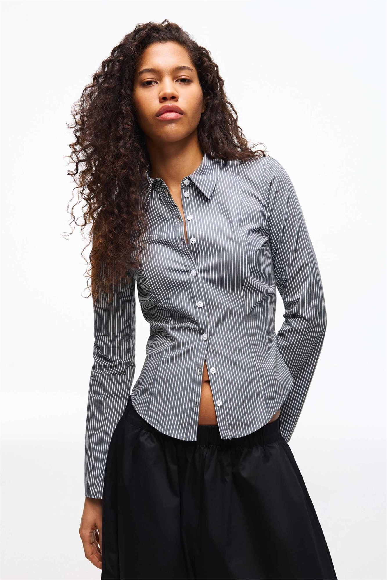 Рубашка с зауженным кроем и расклешенными рукавами