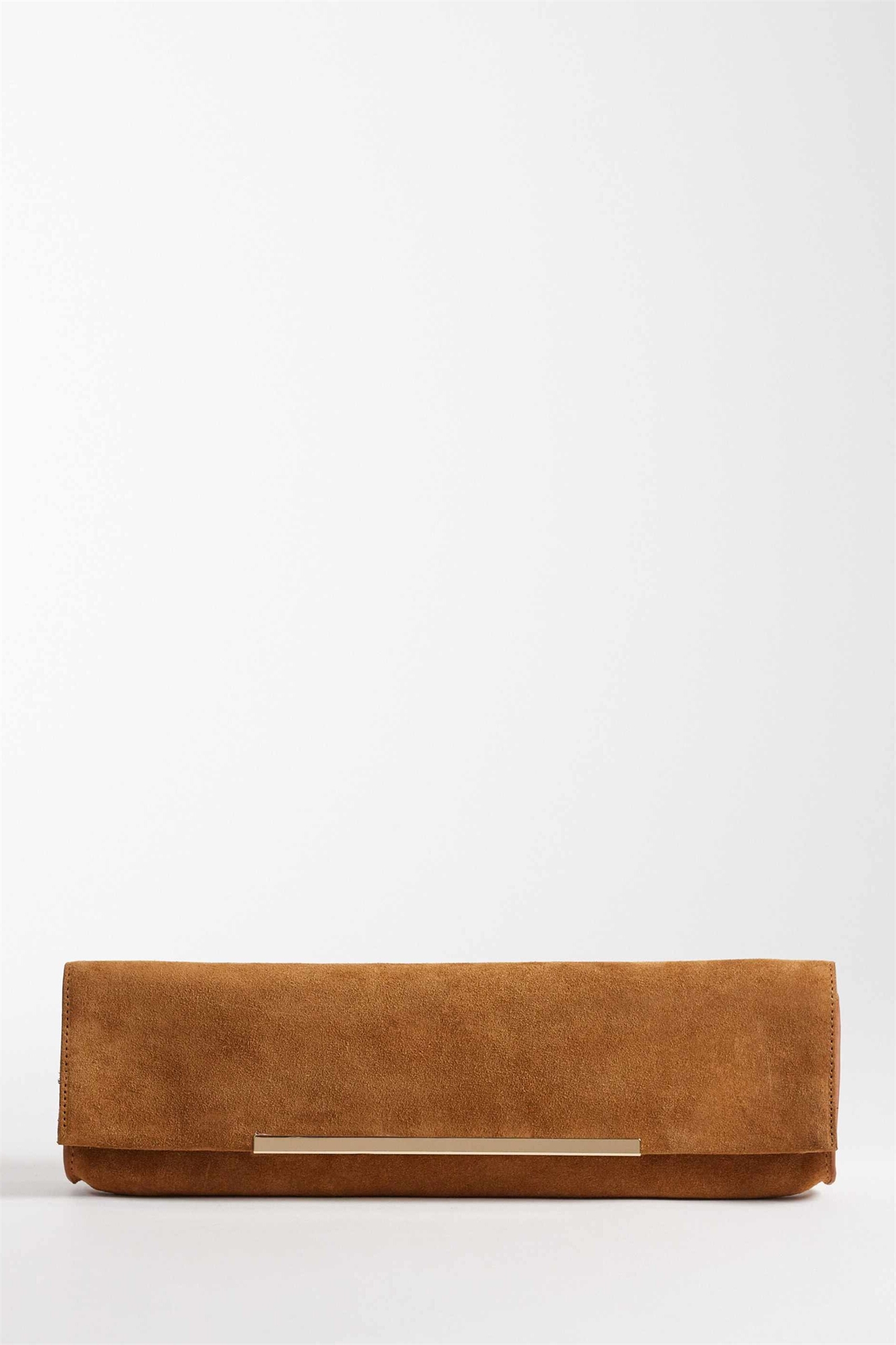 Удлиненная замшевая сумочка-клатч с рельефным элементом в виде планки