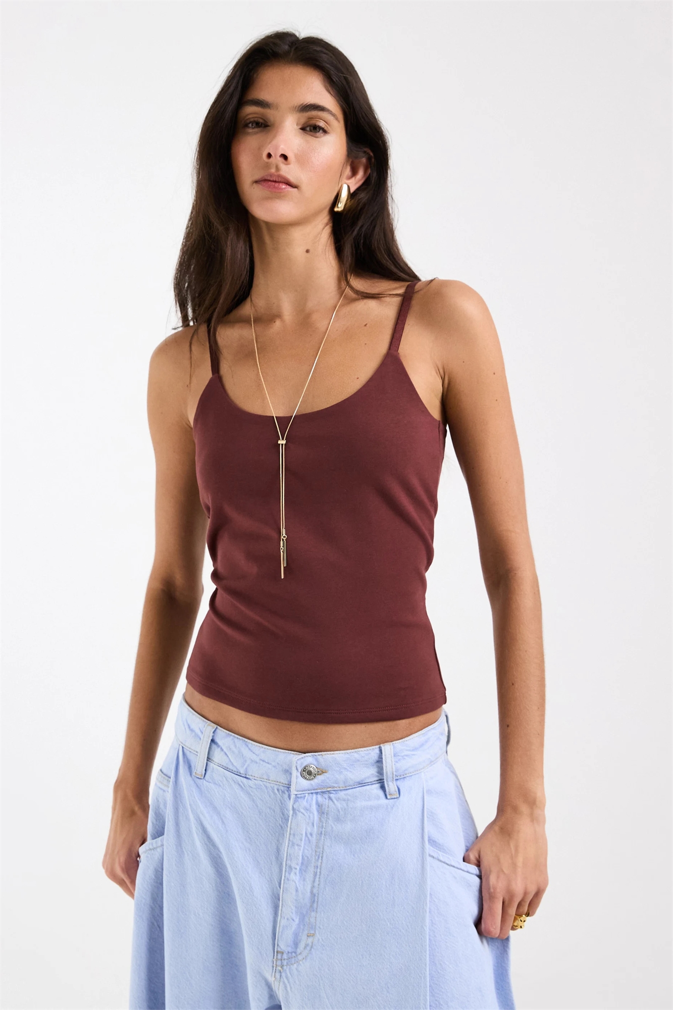 Двухслойный топ-камизолька с круглым вырезом, шоколадного цвета