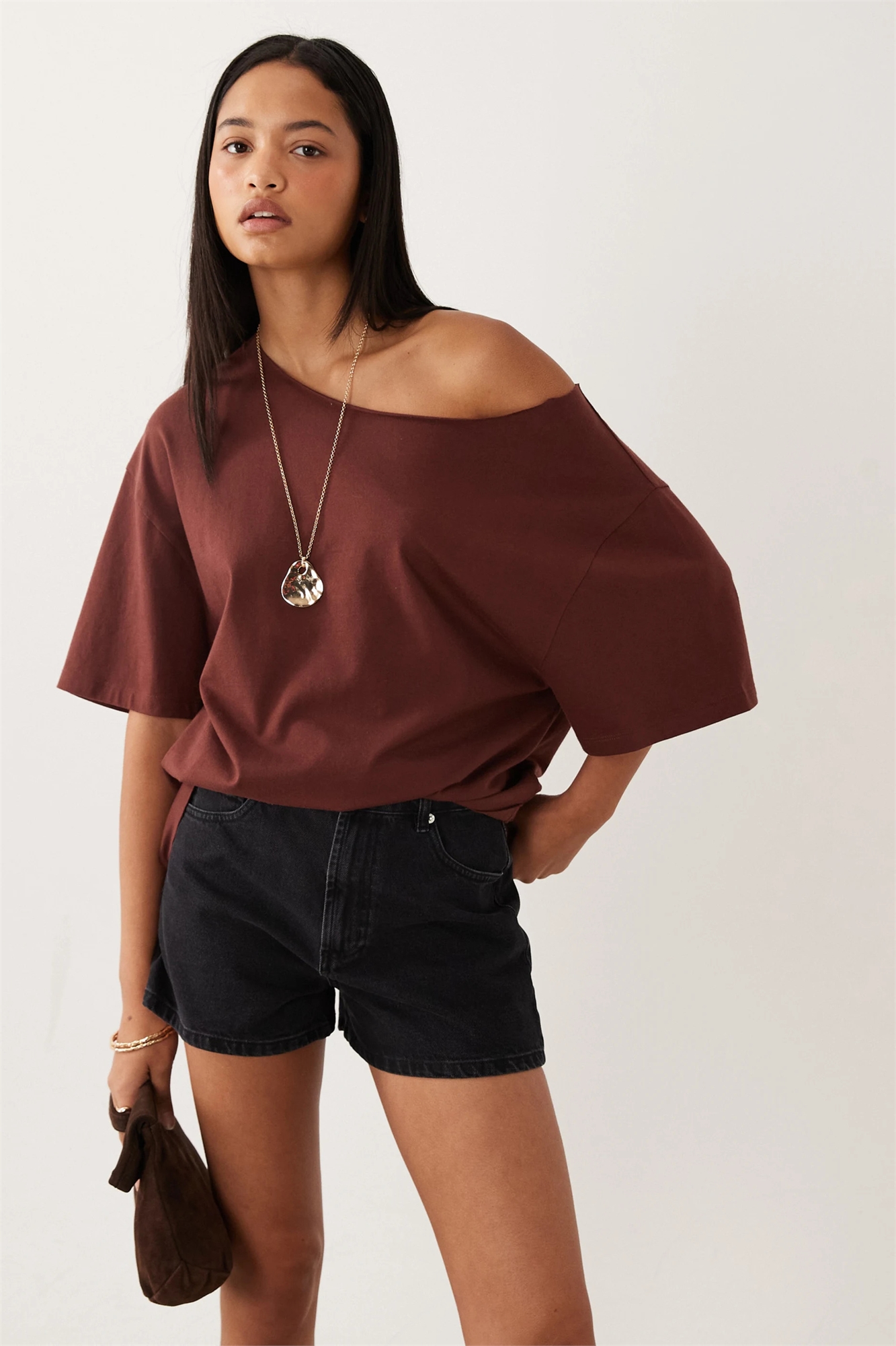 Свободная футболка оверсайз с открытыми плечами