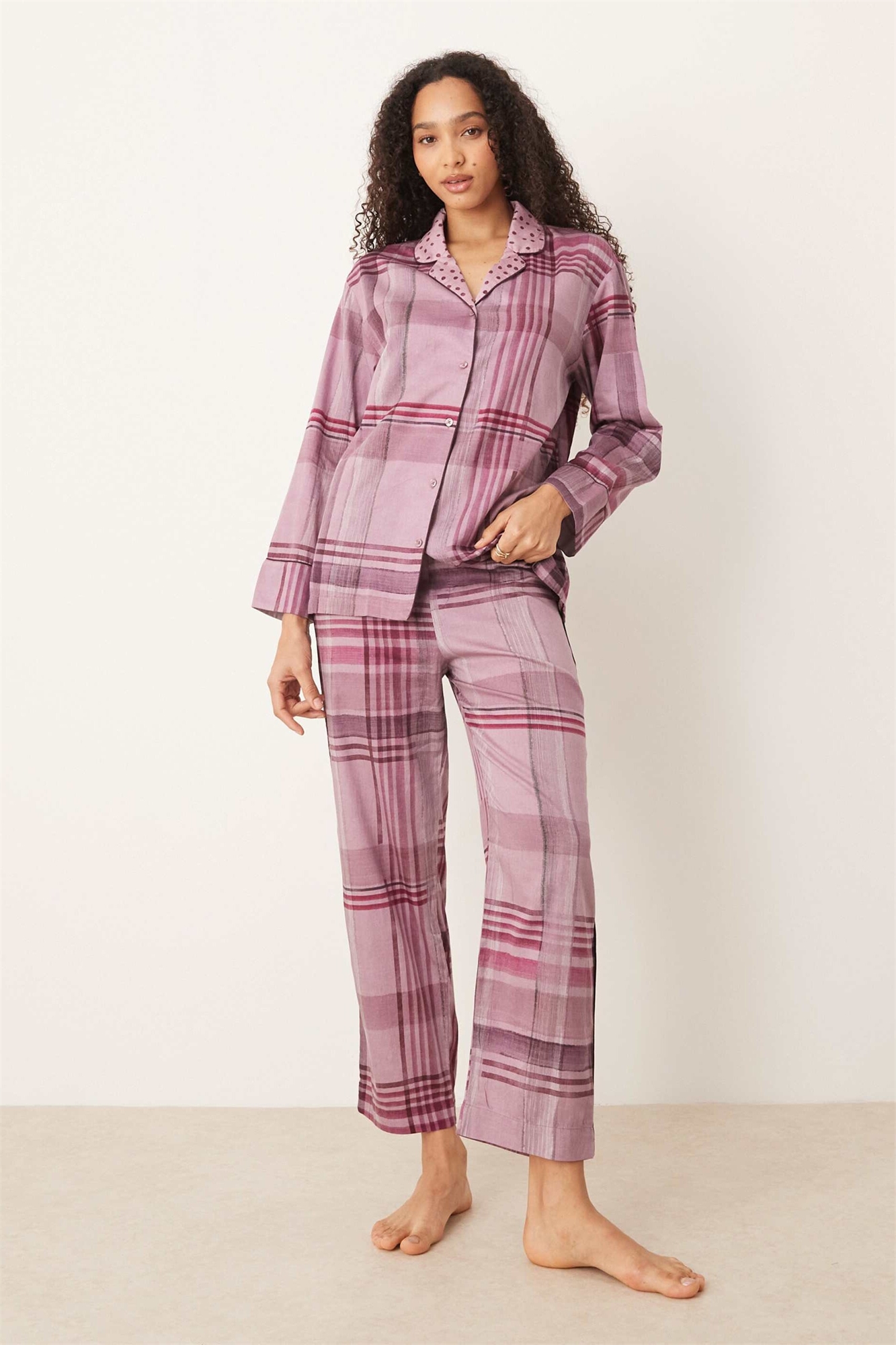 Пижамная рубашка из 100% хлопка в клетку co-ord