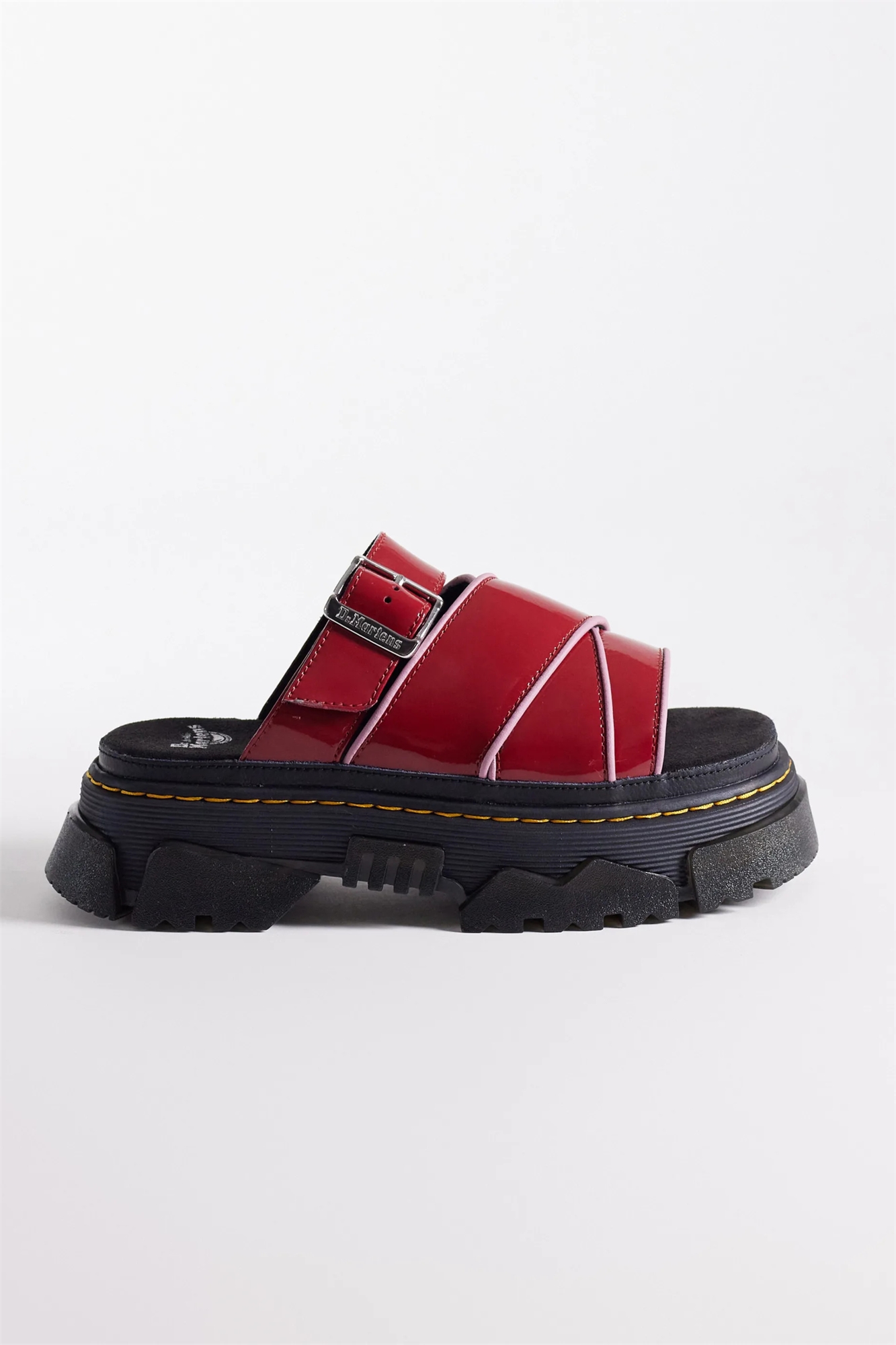 Блестящий лакированный верх Подошва: 68 % поливинилхлорида, 32 % этиленвинилацетата; верх: 95 % кожи, 5 % полиэтилена.