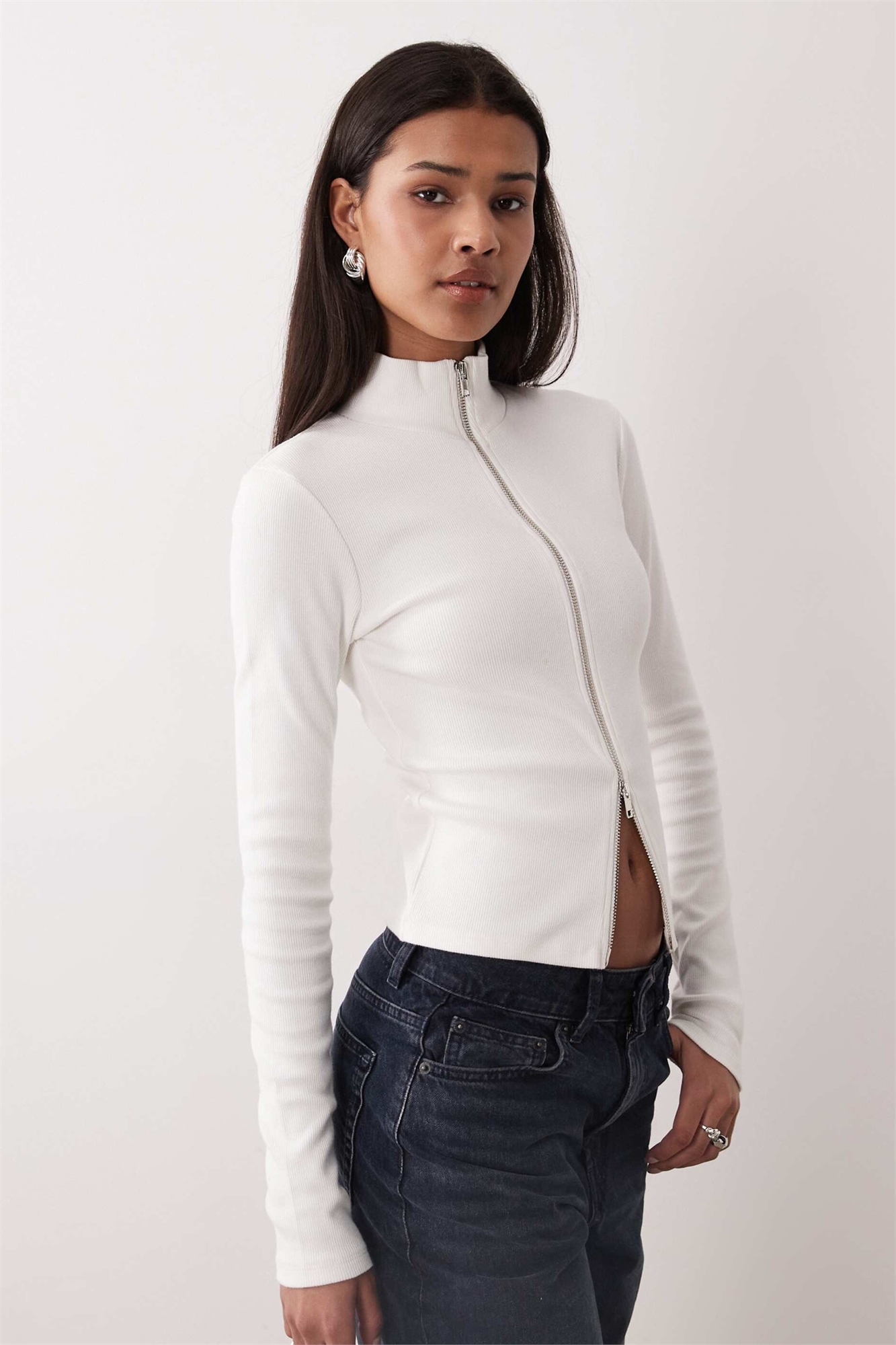 Ребристый джерси: мягкая и эластичная трикотажная ткань Основной материал: 48% хлопок, 48% полиэстер, 4% эластан.