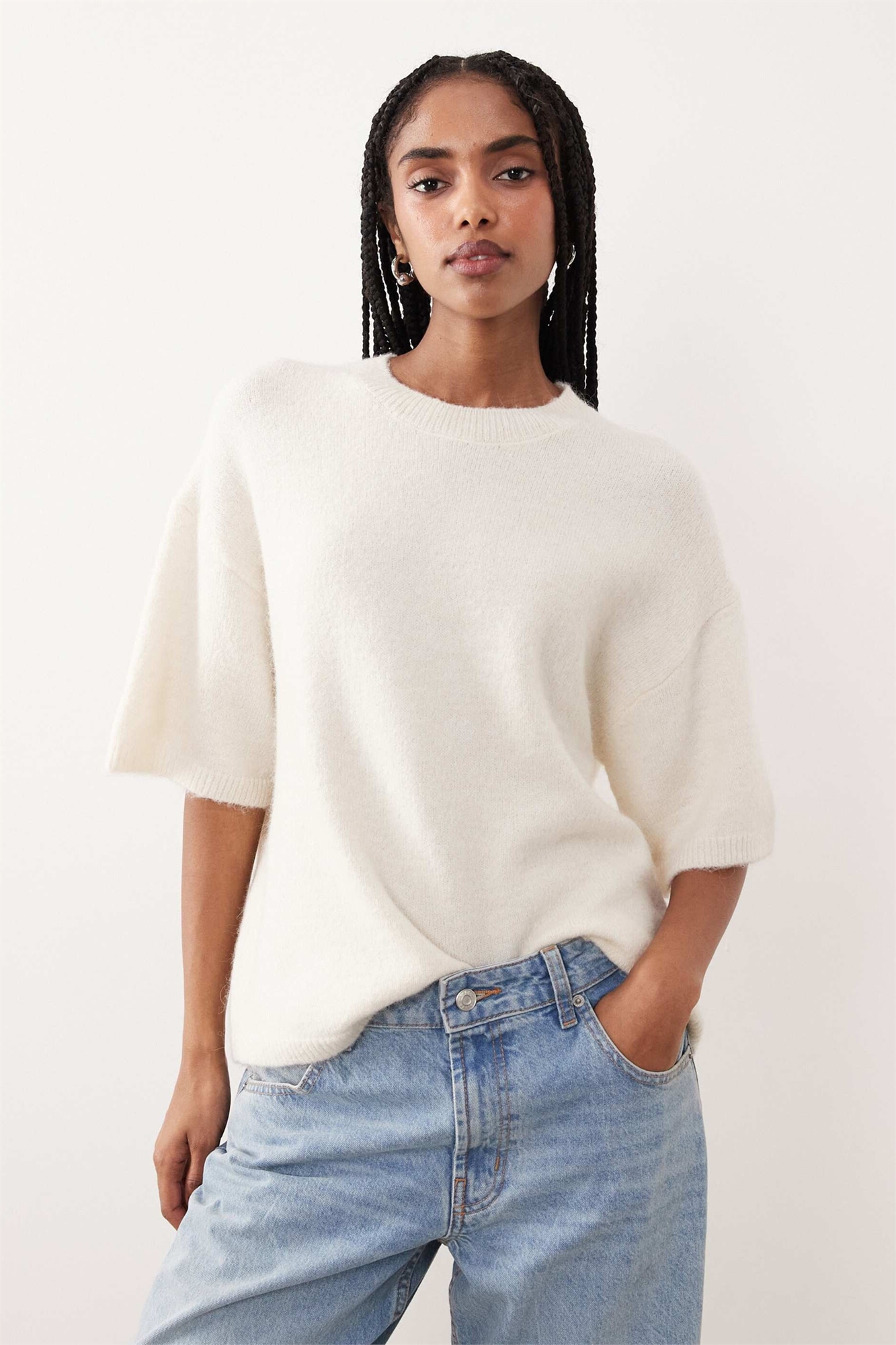 Свитер из шерсти и альпаки с короткими рукавами и свободным кроем