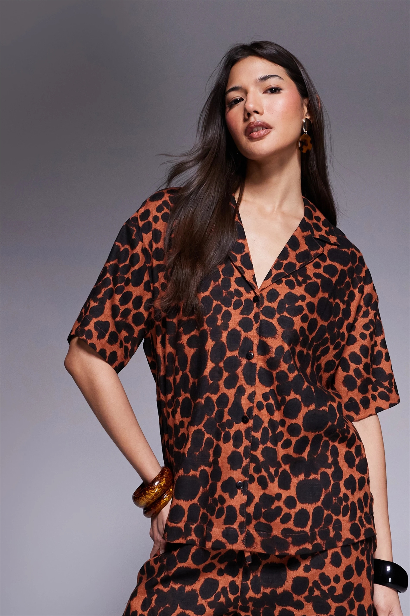Рубашка из льна с воротником-ревер co-ord