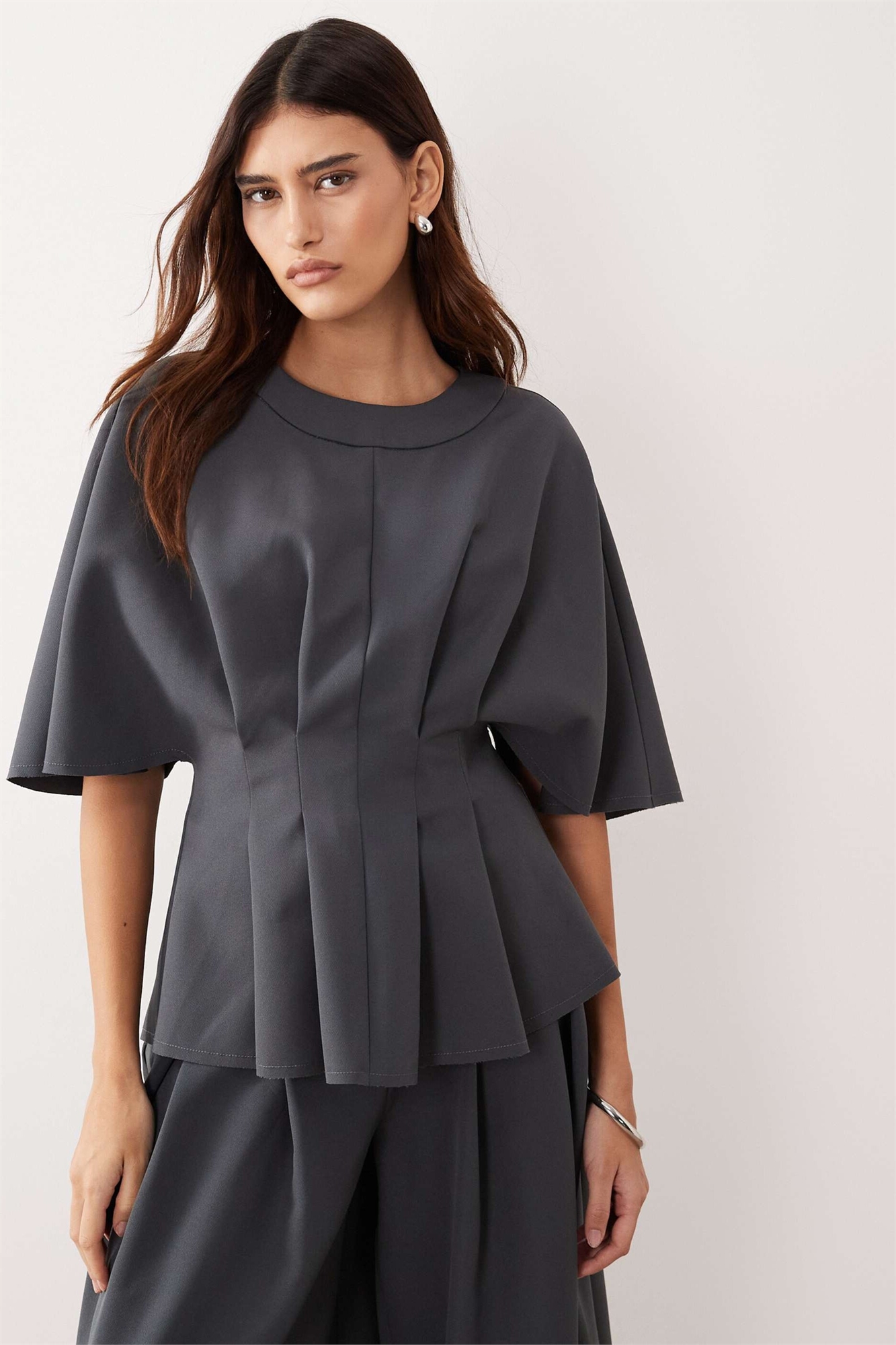 Топ с плиссированной талией и короткими рукавами co-ord