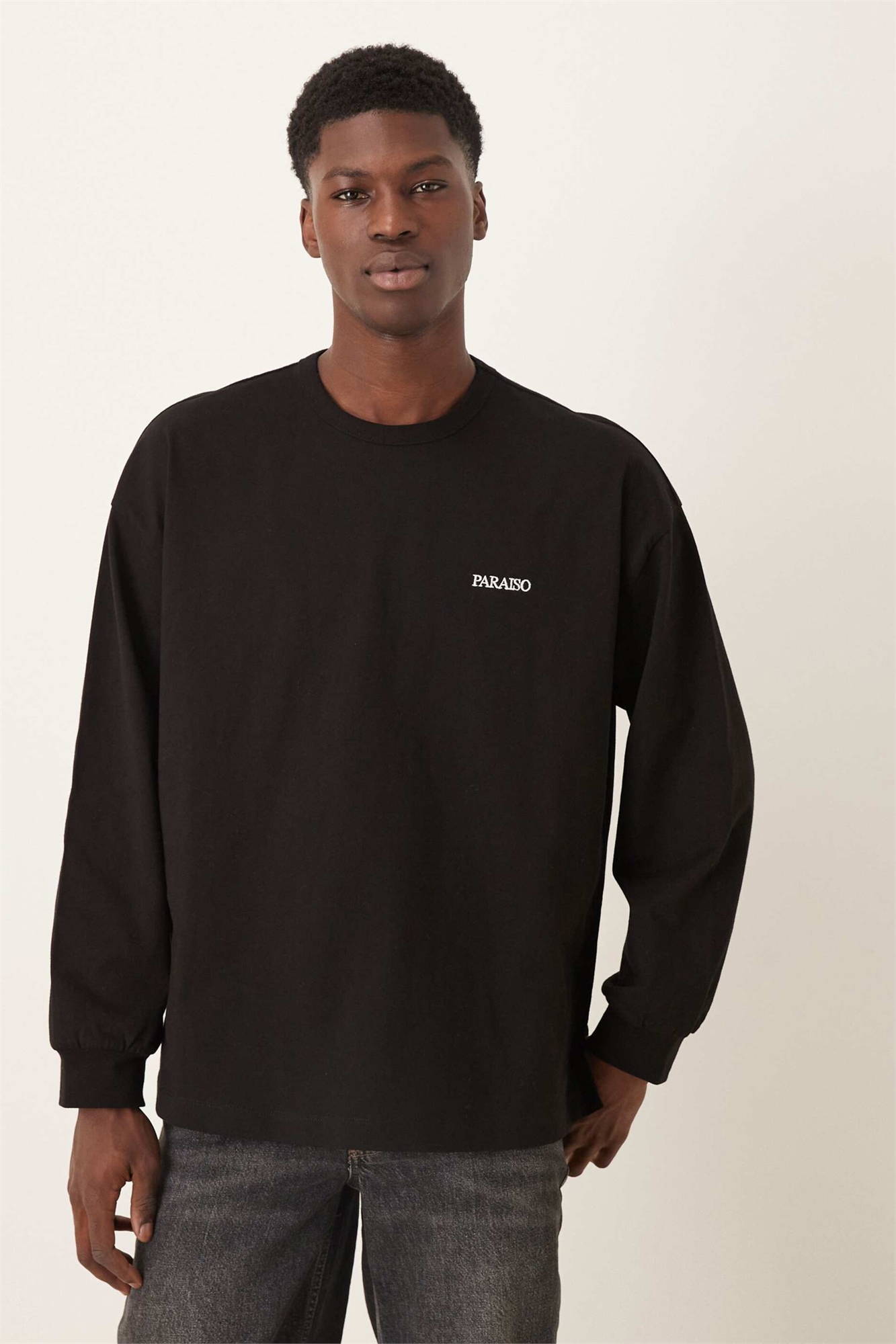 Футболка свободного кроя с длинными рукавами и вышивкой на груди