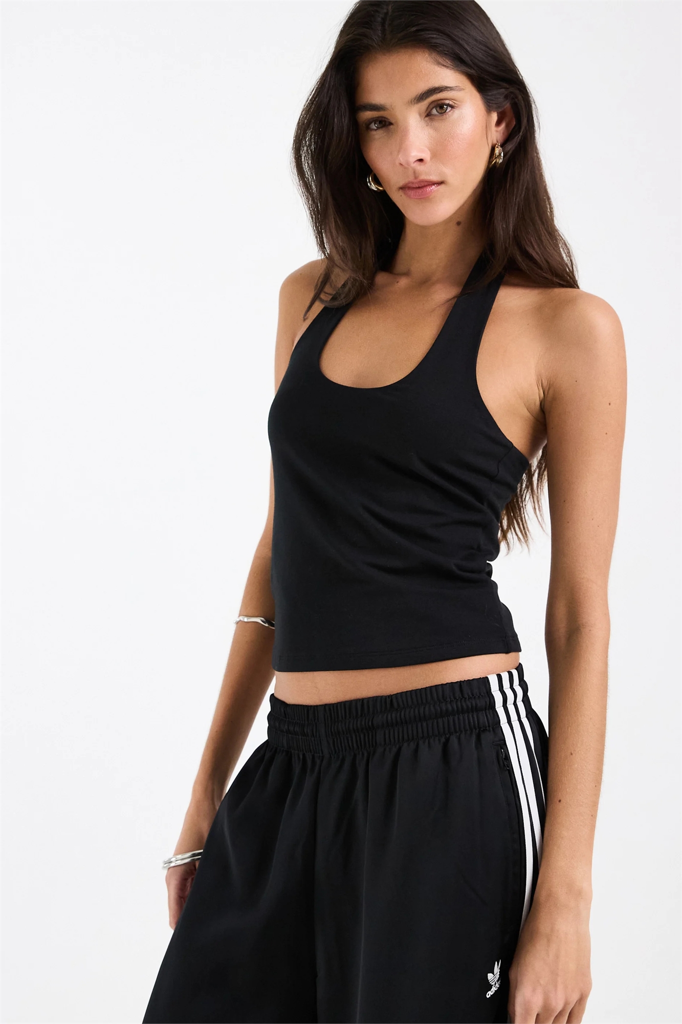 Двухслойный топ с минималистичным вырезом за шеей