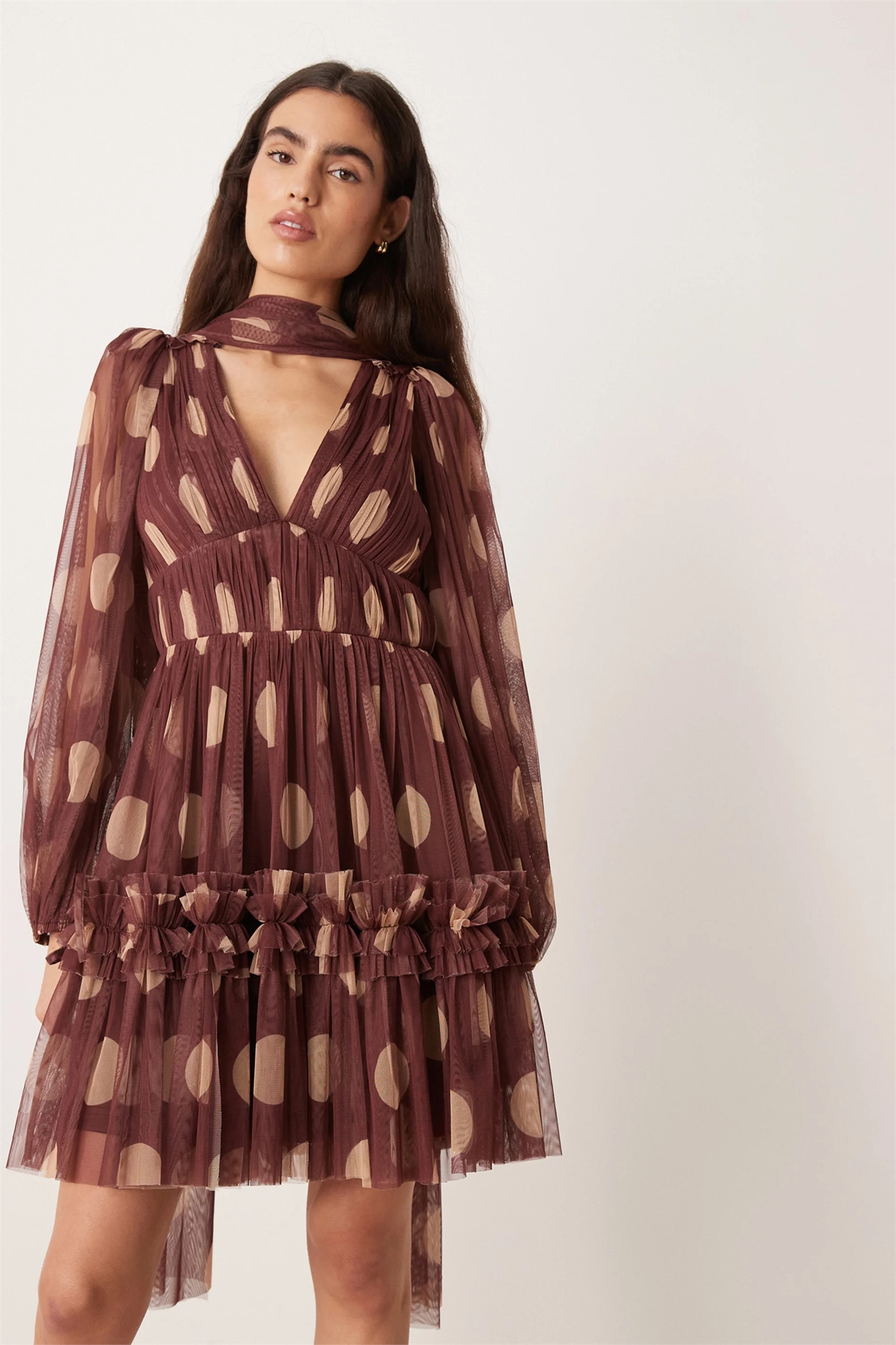 Мини-платье с тюлевым шарфом на шее