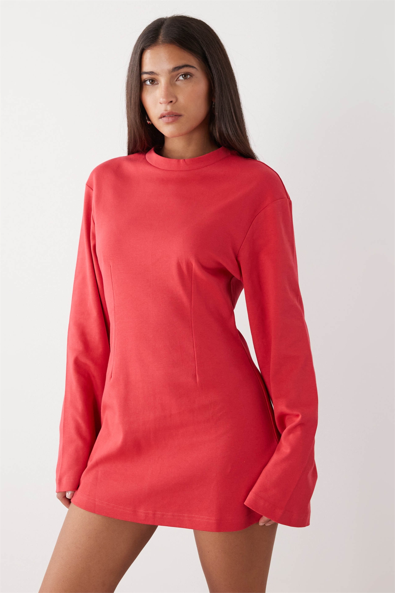 Мини-платье с затянутой талией и длинными рукавами