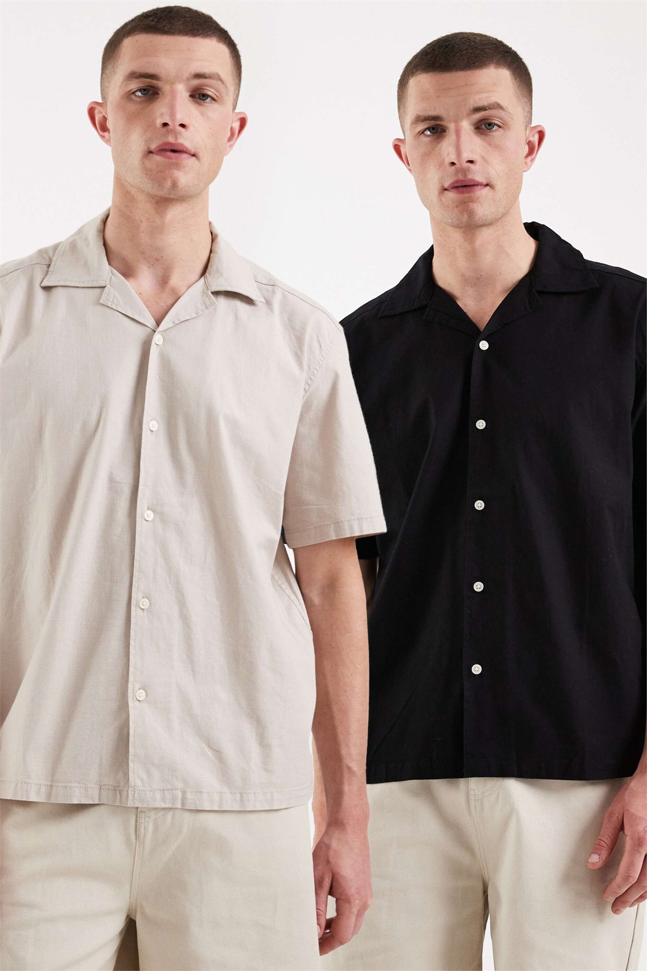 Набор из 2 рубашек с воротником-ревер из ткани с высоким содержанием хлопка