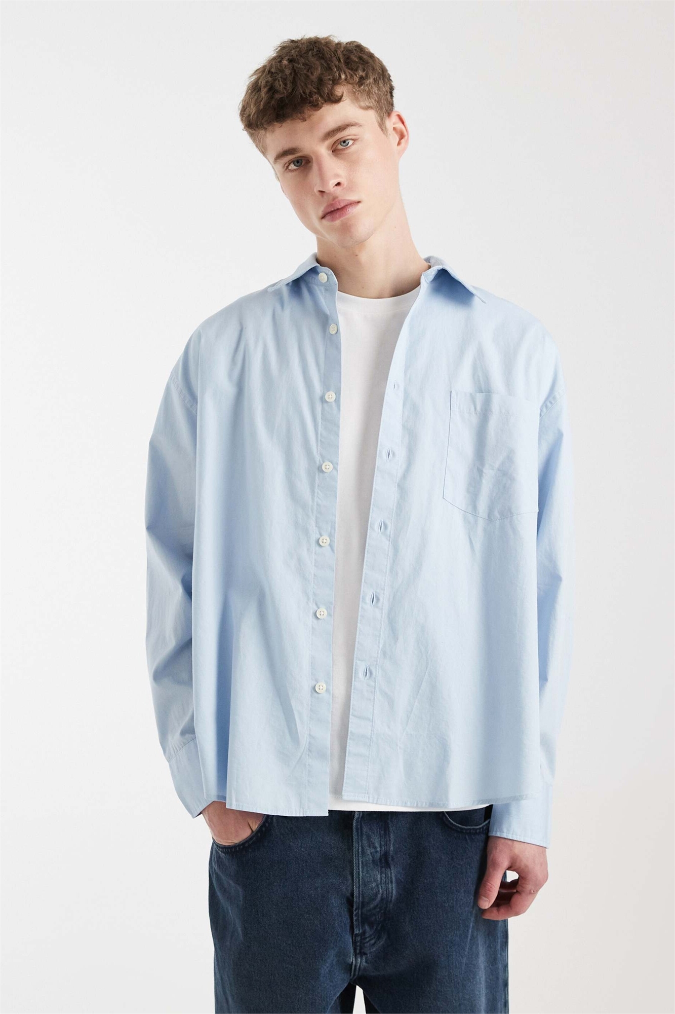 Хлопковая рубашка с длинными рукавами из поплина