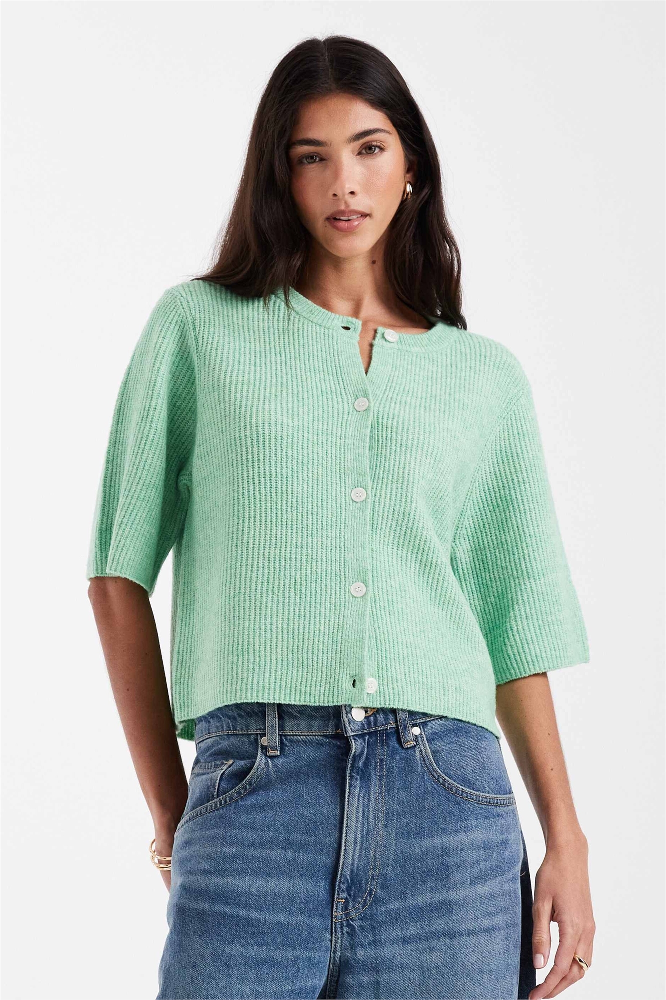Мягкий вязаный кардиган с короткими рукавами