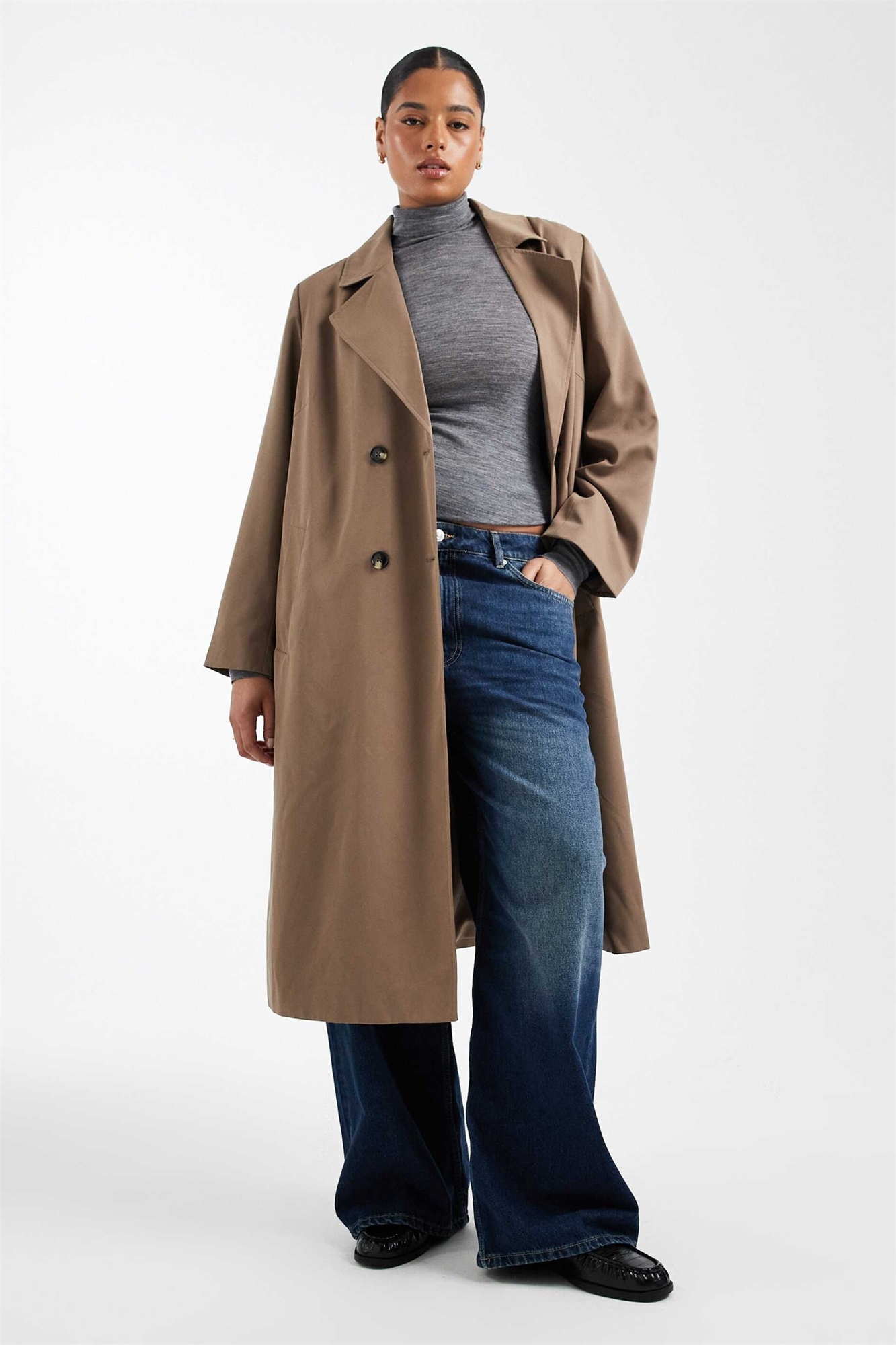 Тренч с длинным силуэтом и поясом от Pieces Curve