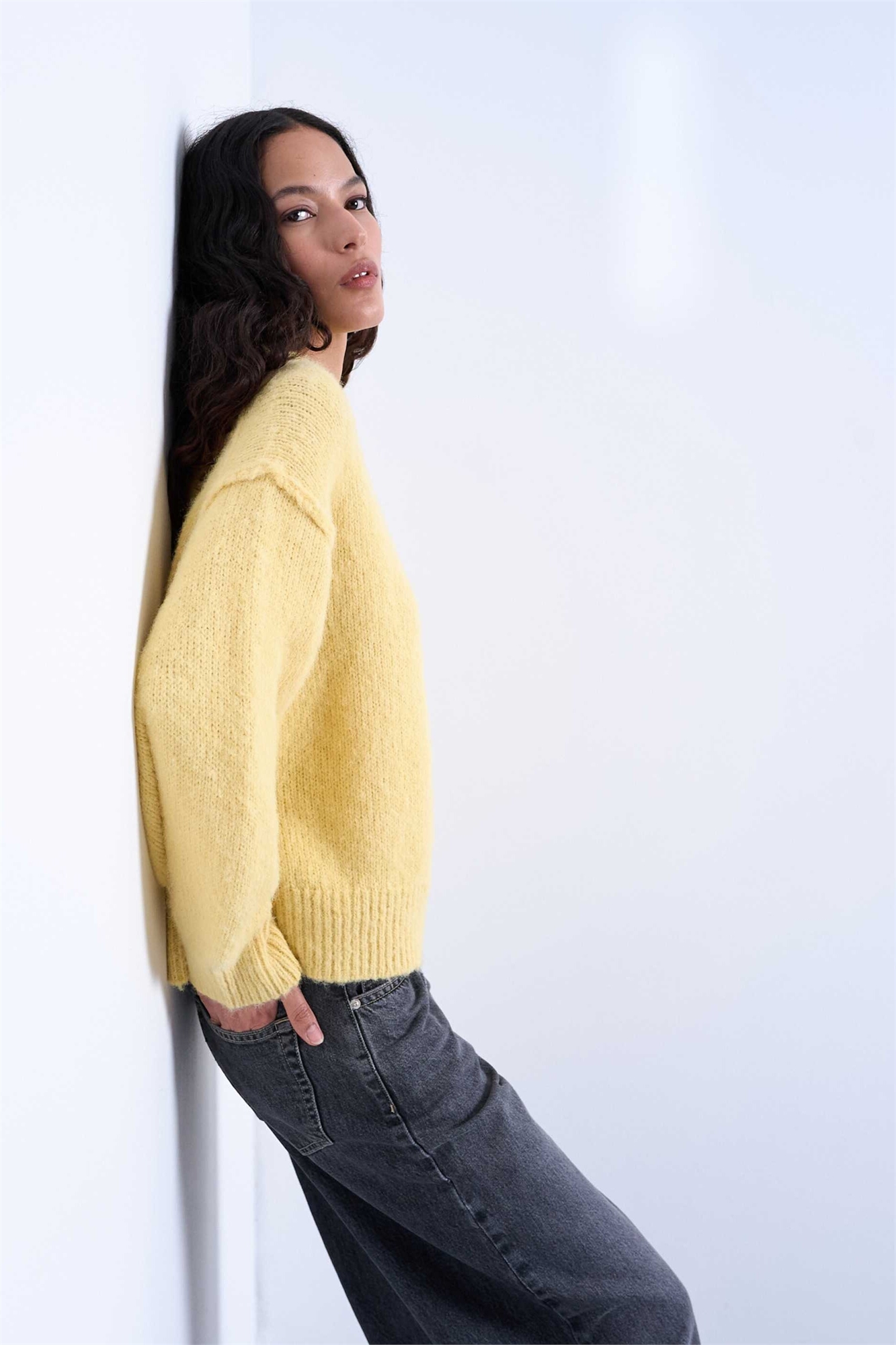 Свитер из шерстяной смеси с пушистой отделкой и открытыми швами