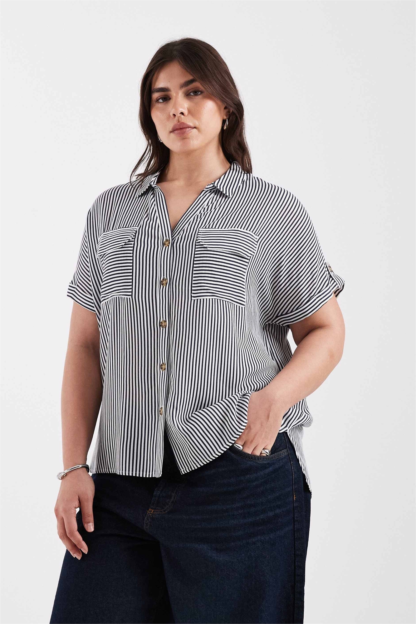 Рубашка с коротким рукавом, застегивающаяся на пуговицы спереди, с карманами