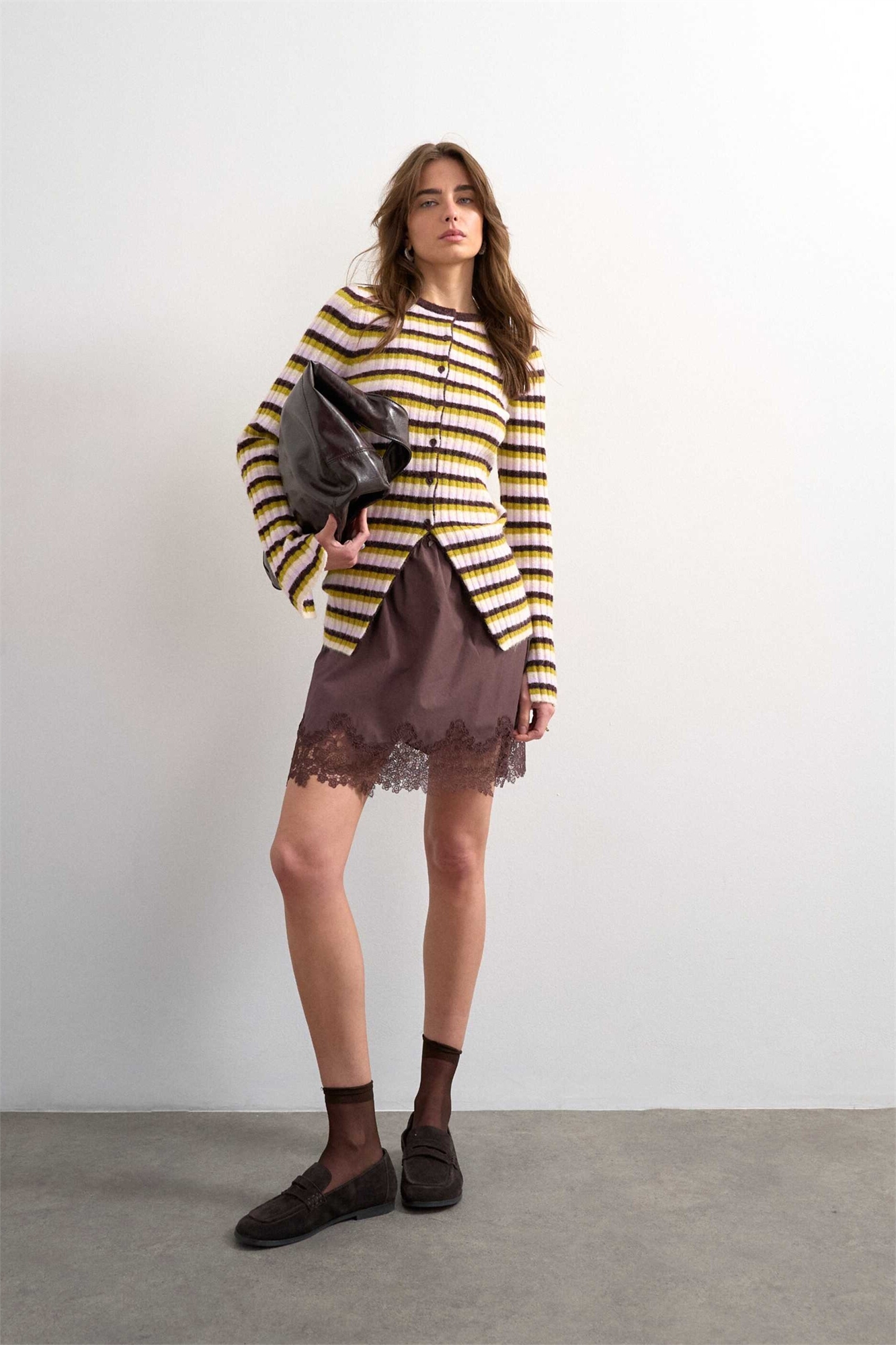 Вязаный кардиган с ребристыми полосками и пуговицами