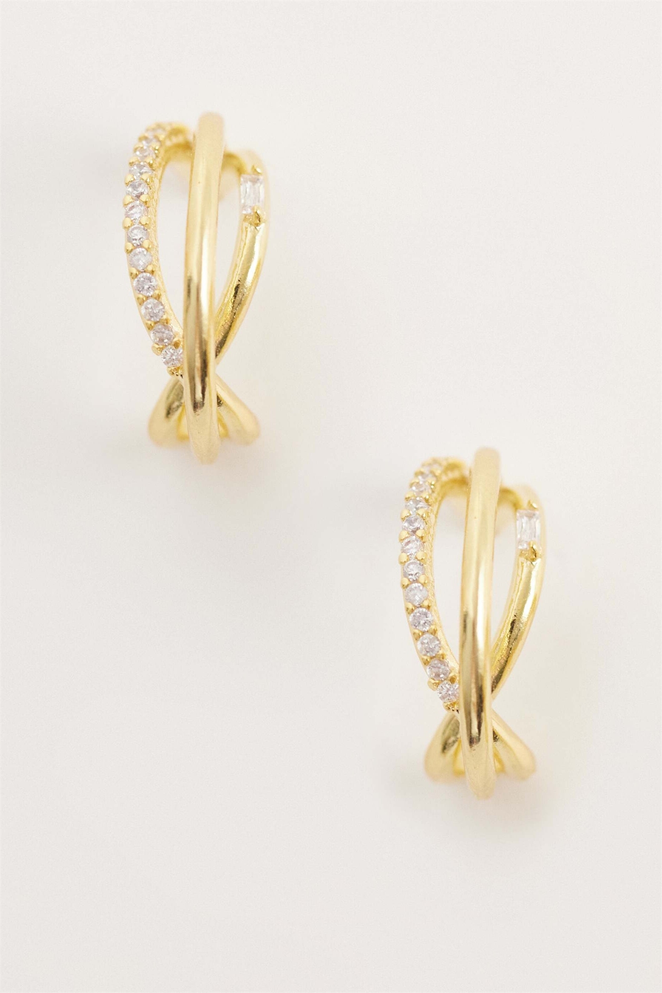 Серьги-кольца с тройной иллюзией из смешанного паве