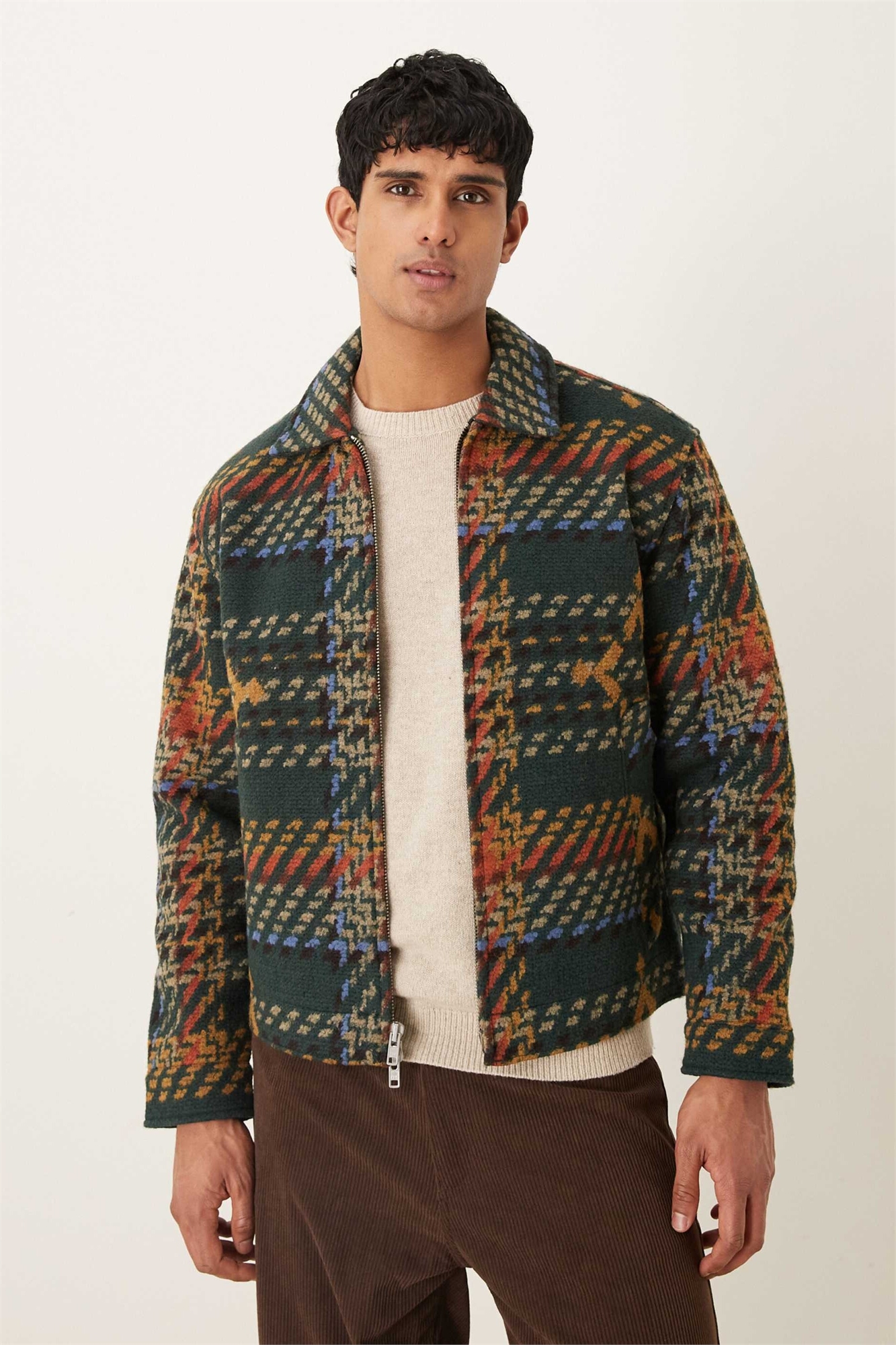 Короткий пиджак из смешанной шерсти с узором «елочка»
