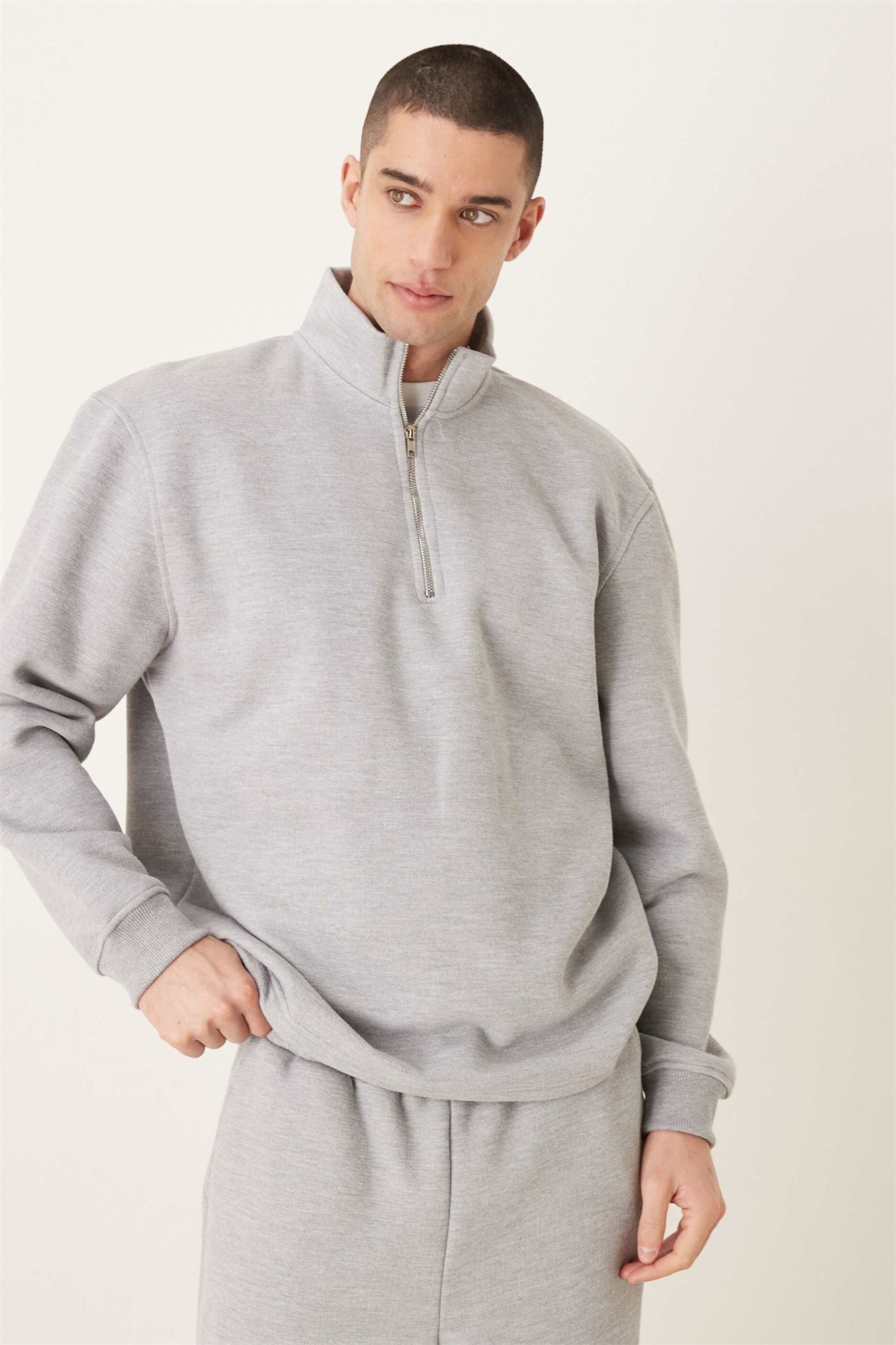 Свитшот свободного кроя с четвертью молнии из пике с ворсистой внутренней стороной