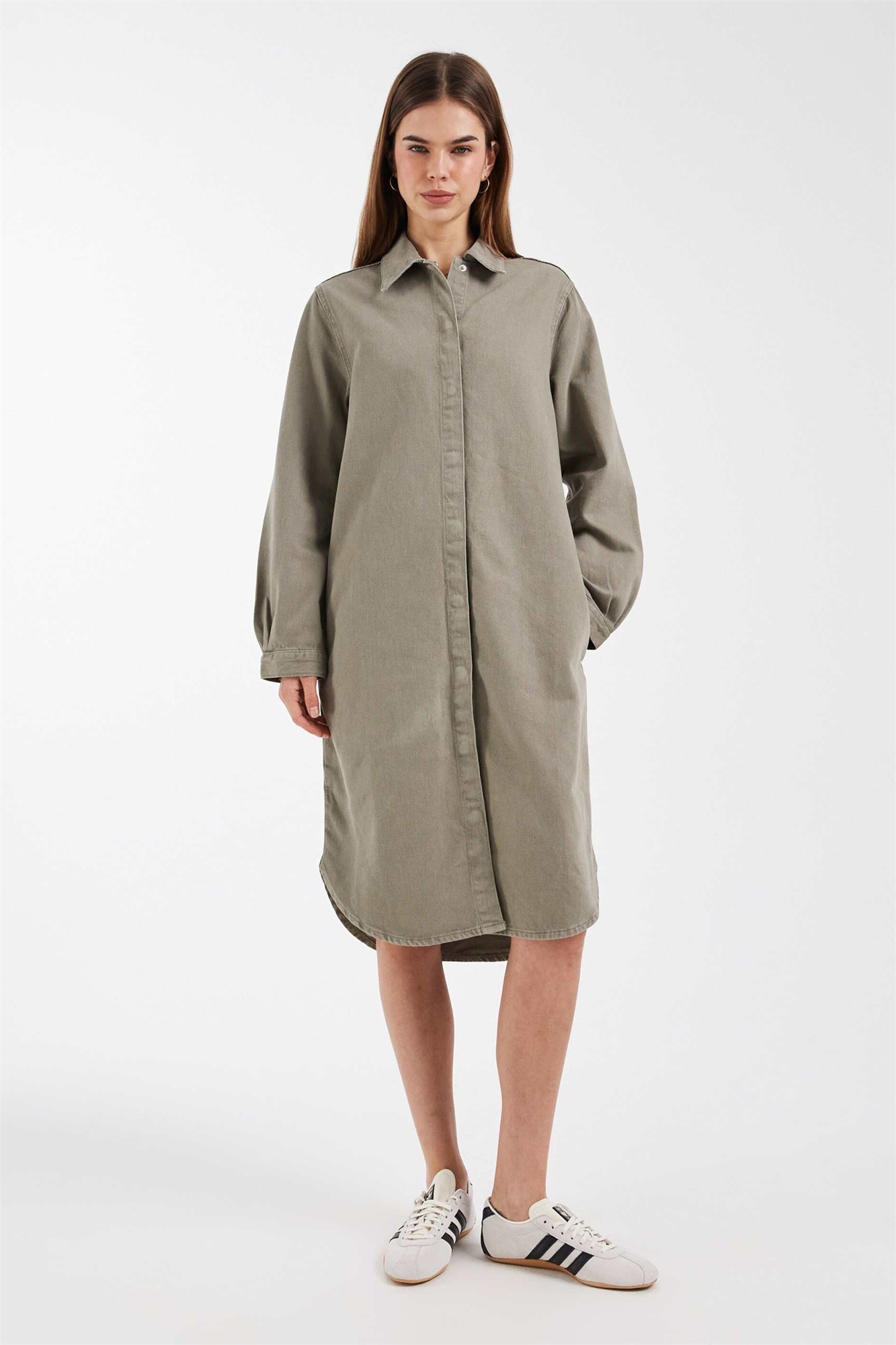 Неэластичный деним: оттенок хаки Основной материал: 100% хлопок.