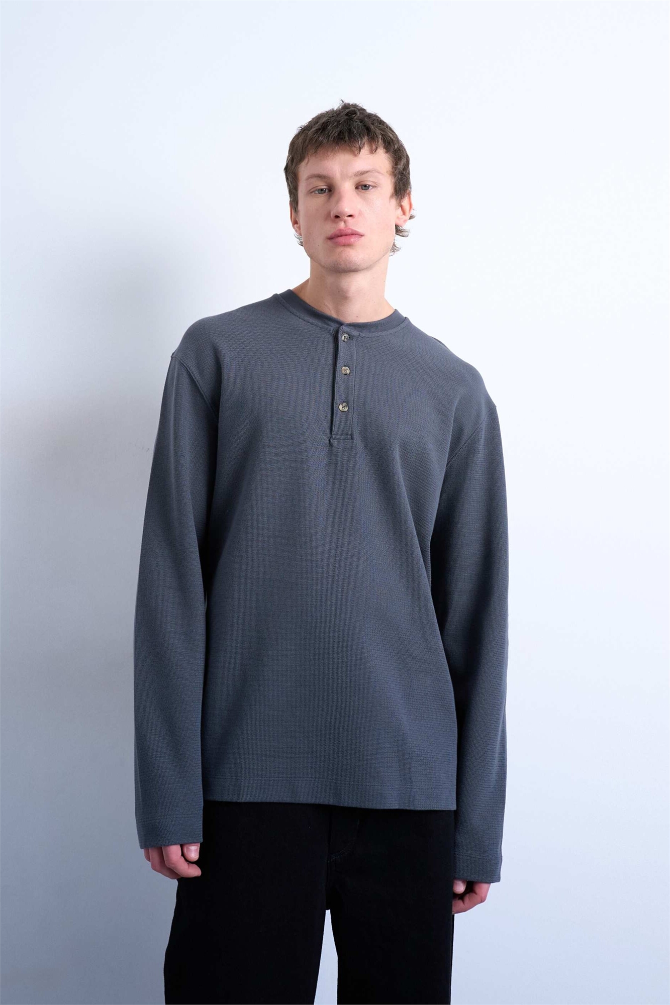 Футболка-хенли премиум-класса свободного кроя из плотной ткани с вафельной текстурой