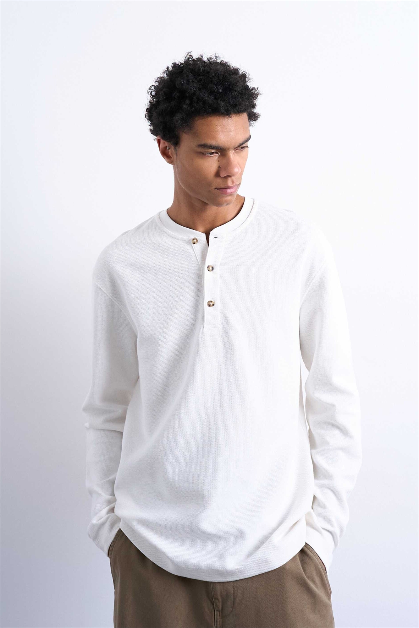 Футболка-хенли премиум-класса свободного кроя из плотной ткани с вафельной текстурой