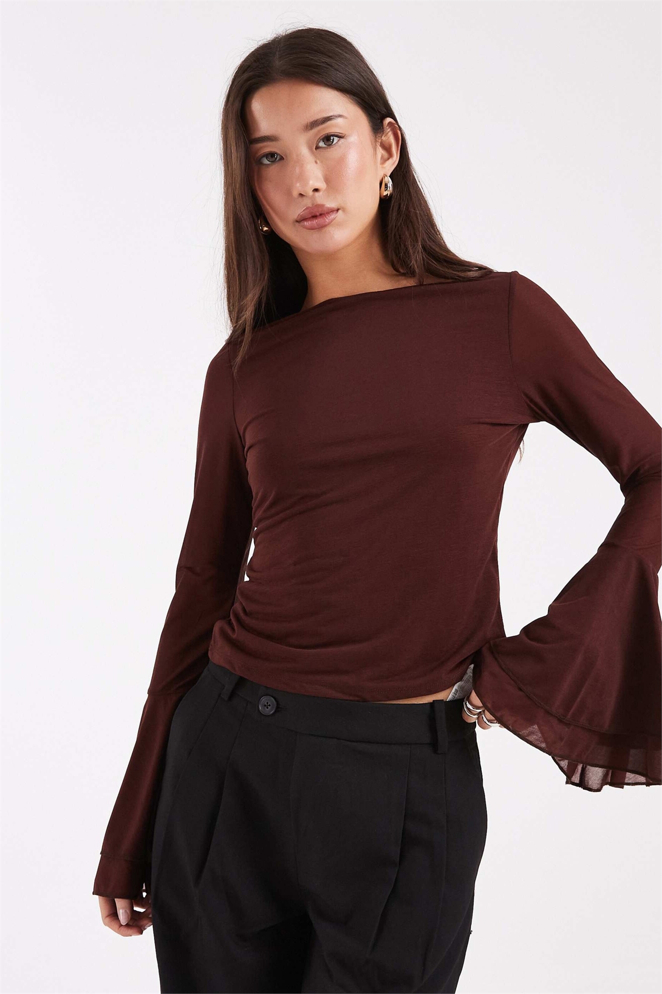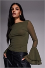 Облегающая кофта с длинными рукавами и расклешенными рукавами из сетки