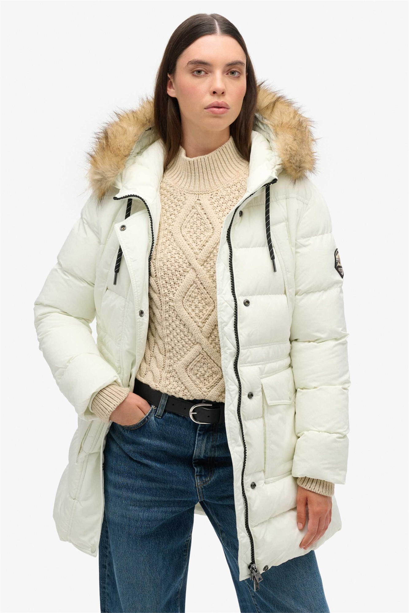 Пуховик Everest средней длины из искусственного меха, цвет: белый