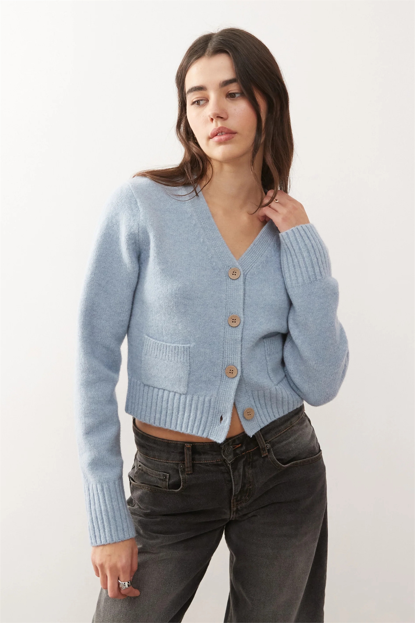 Компактный вязаный кардиган с карманами