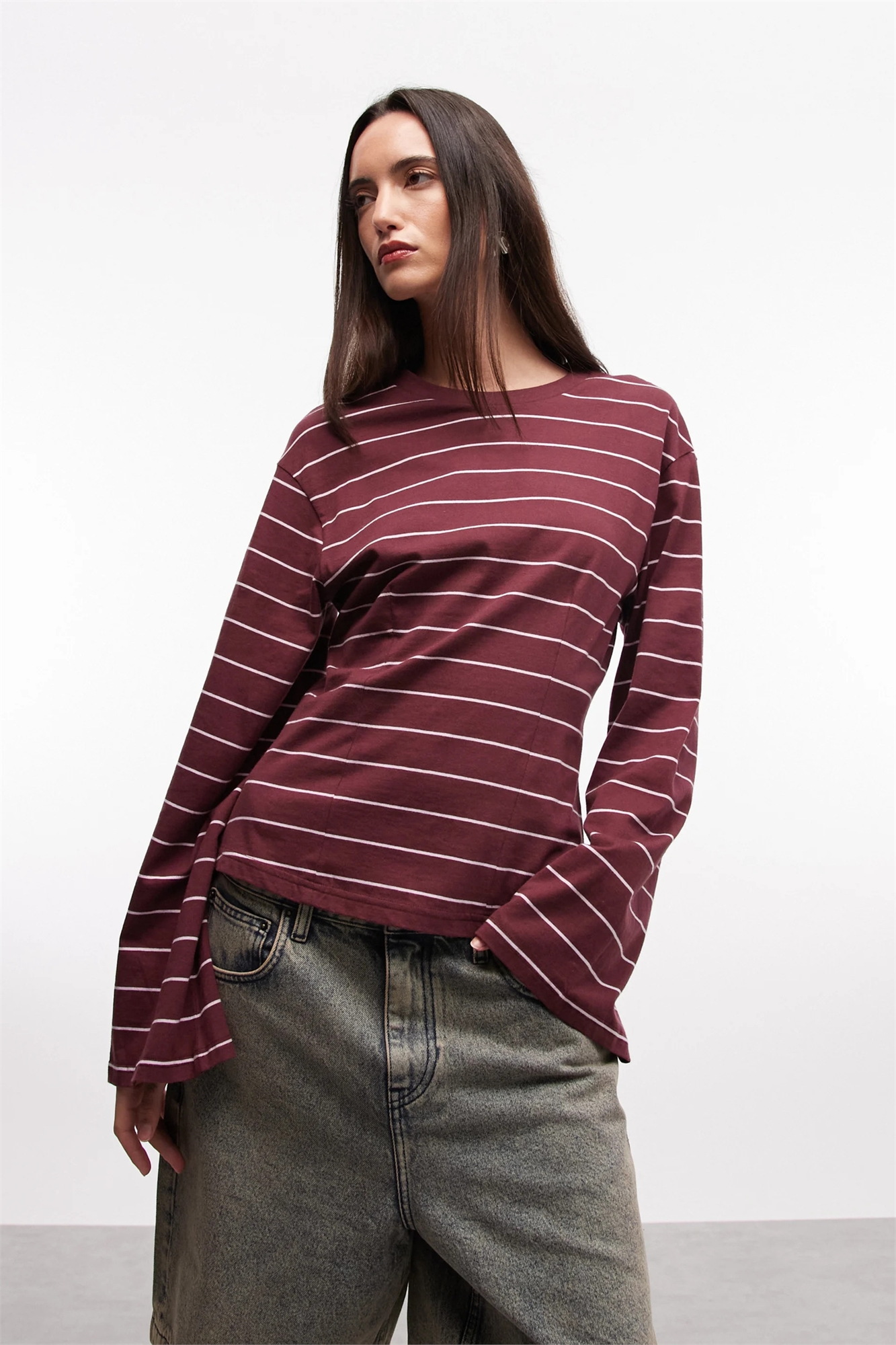 Топ из трикотажа с зауженной талией и длинными рукавами