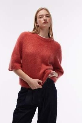 Свитер свободного кроя с короткими рукавами из смеси мохера и шерсти