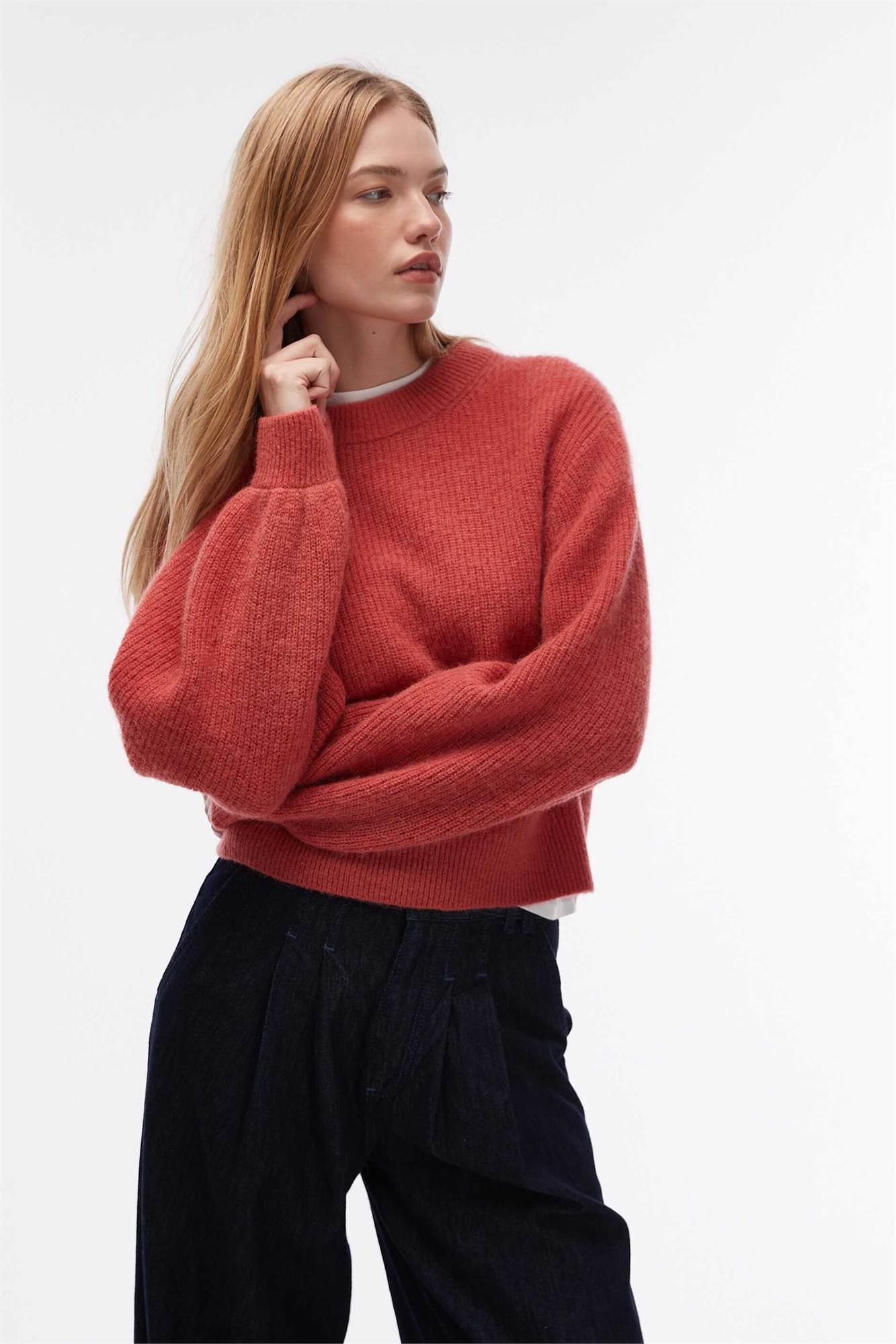 Свитер из смеси шерсти и альпаки с рукавами-балонами
