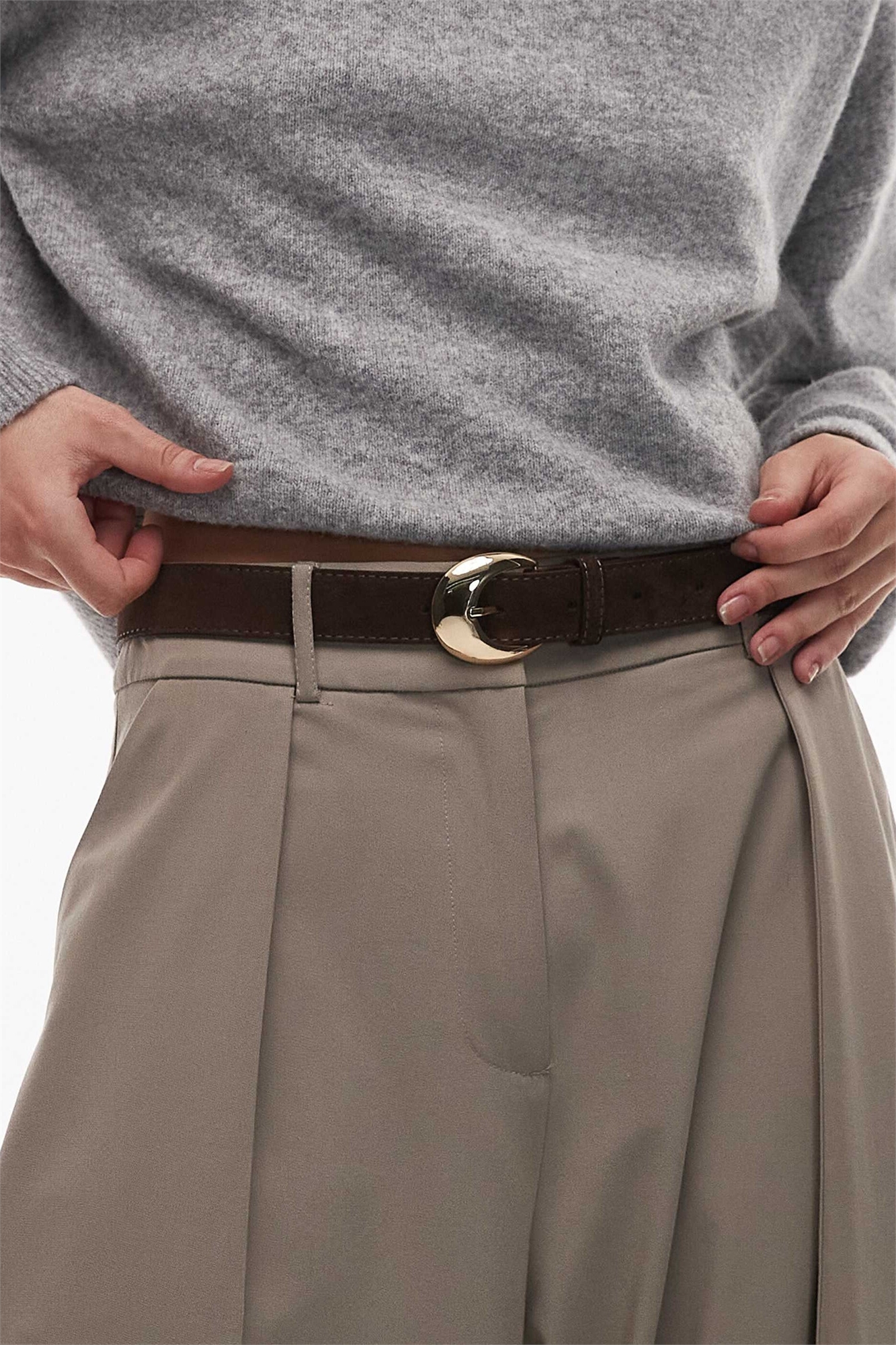 Ремень из замши с золотой пряжкой в форме круга, коричневого цвета