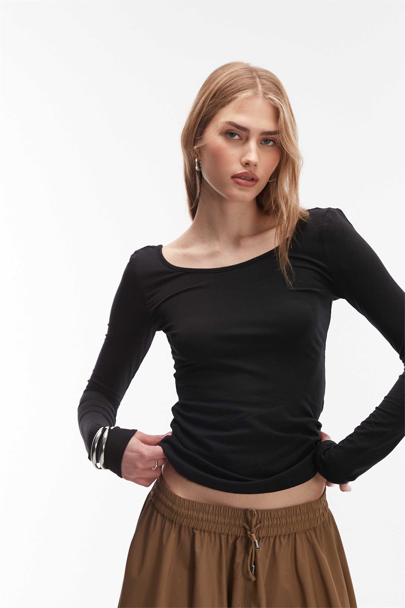 Топ с длинными рукавами и зауженным кроем, с отверстиями для больших пальцев