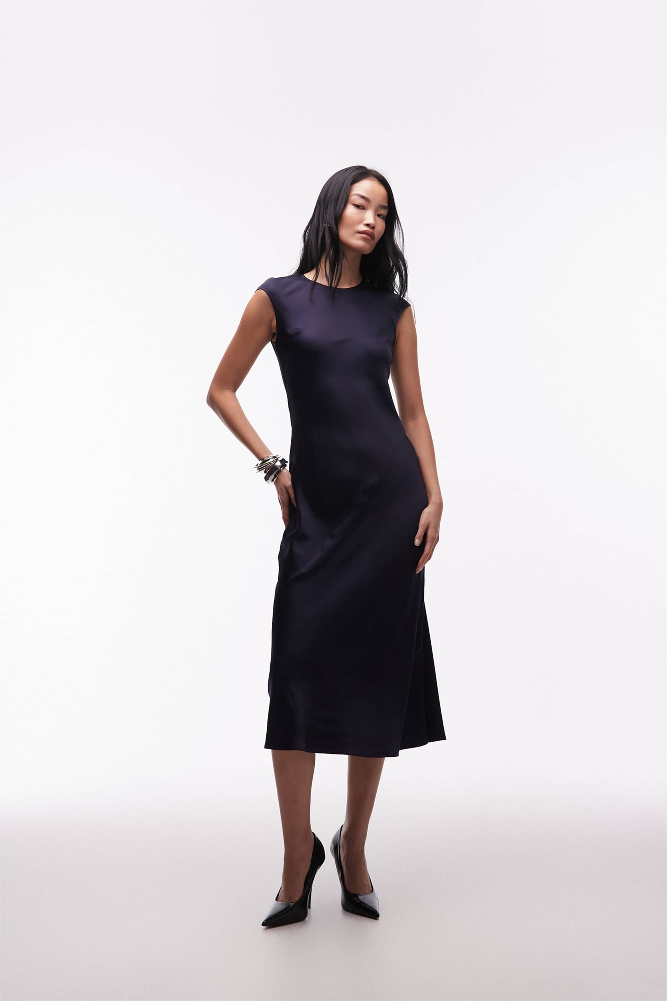 Макси-платье из атласа с косым кроем и рукавами-крылышками