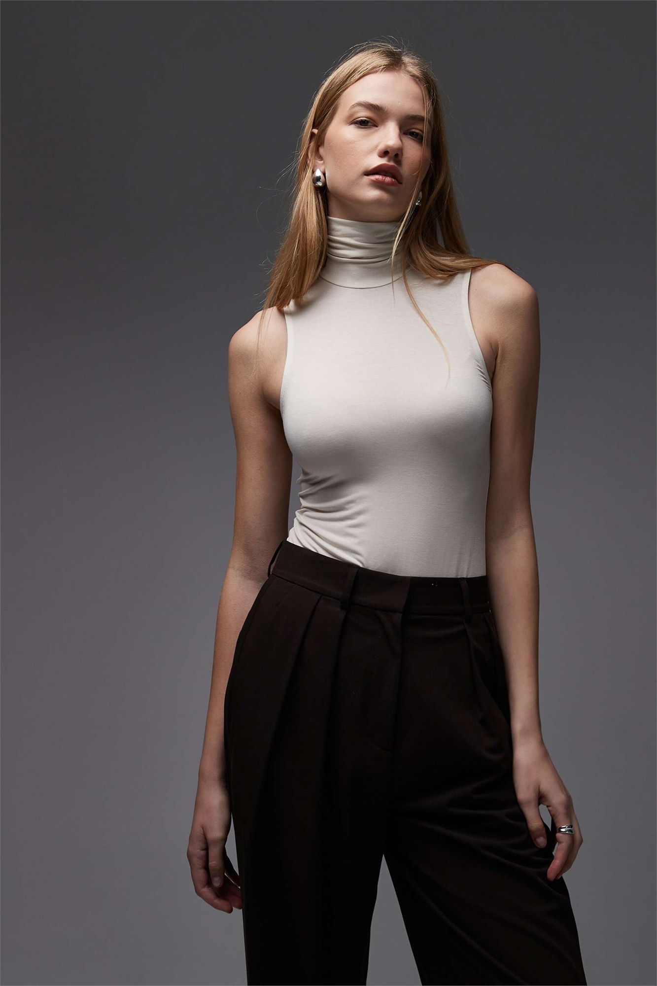 Мягкий топ без рукавов с высоким воротником