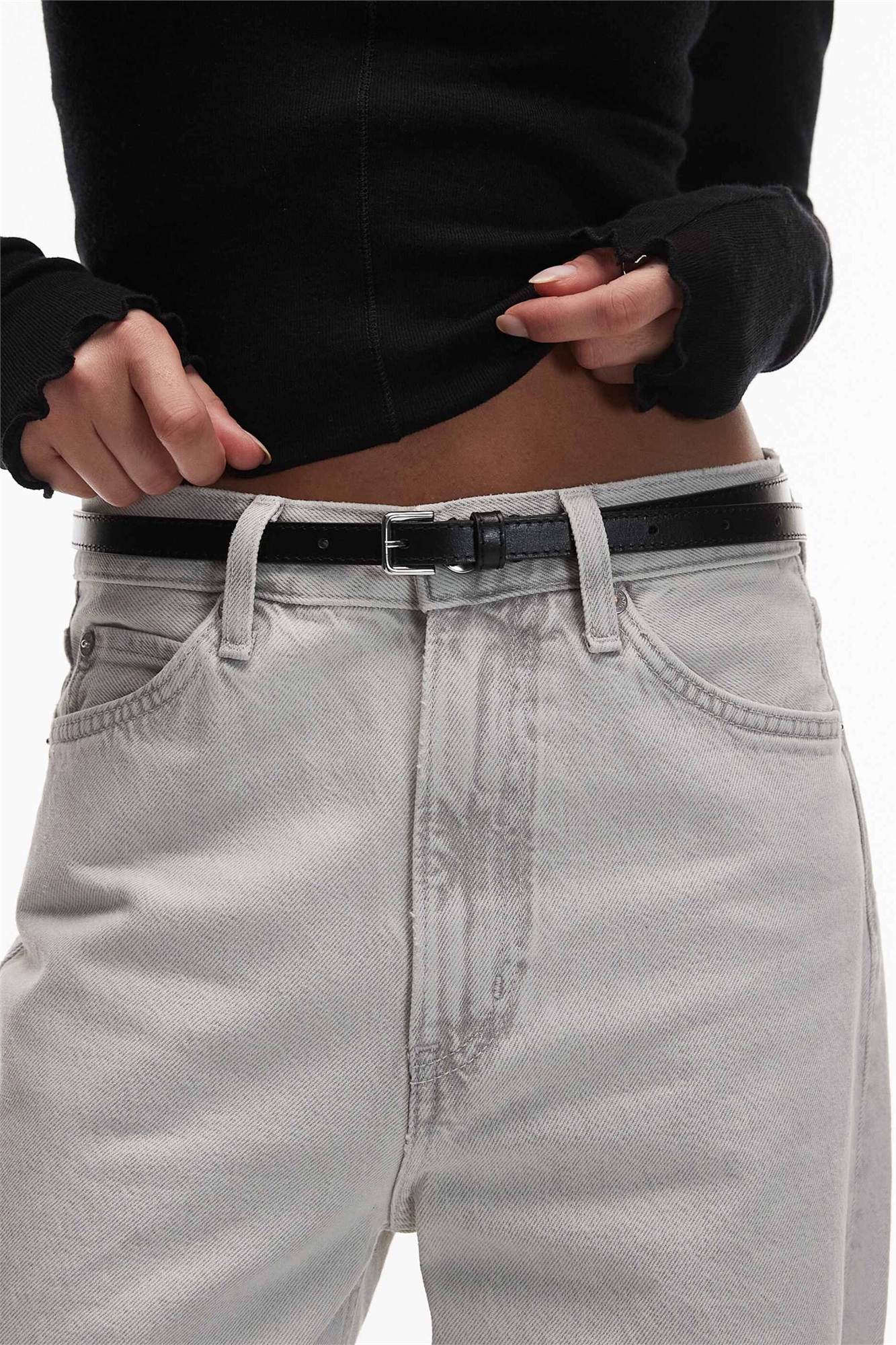 Ремень из натуральной кожи с тонкой квадратной пряжкой