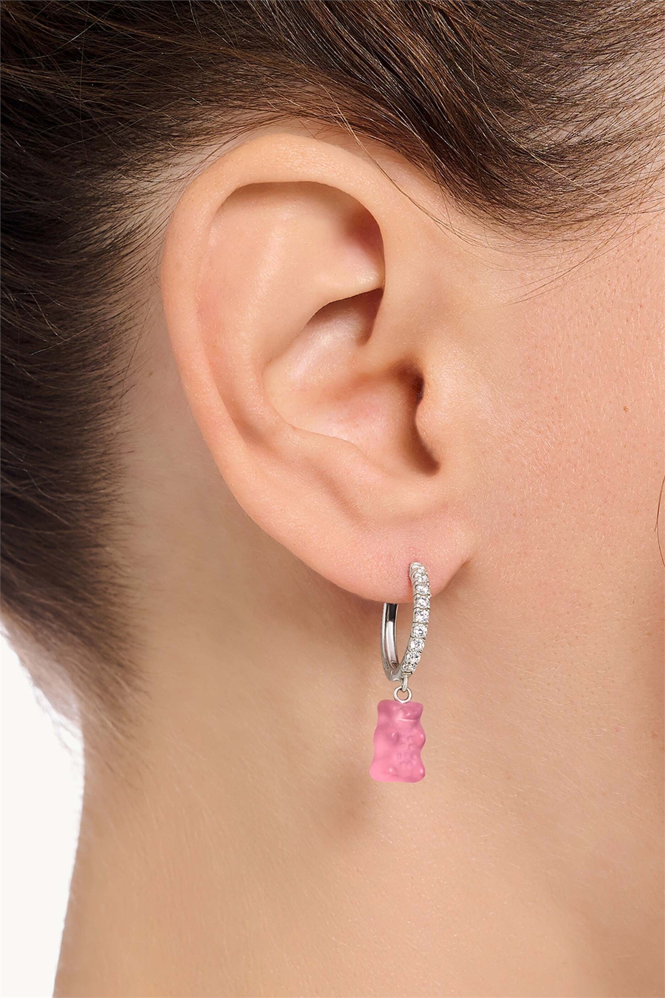 Серьга с одним кольцом и подвеской в виде розового мишки