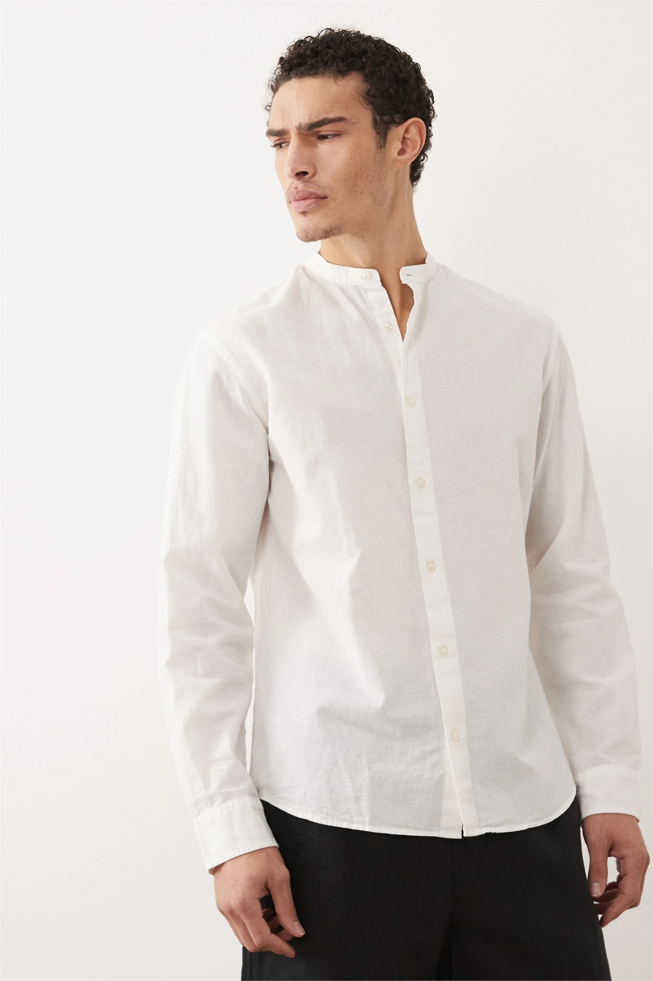 Рубашка из смешанного льна с воротником «под дедушку»