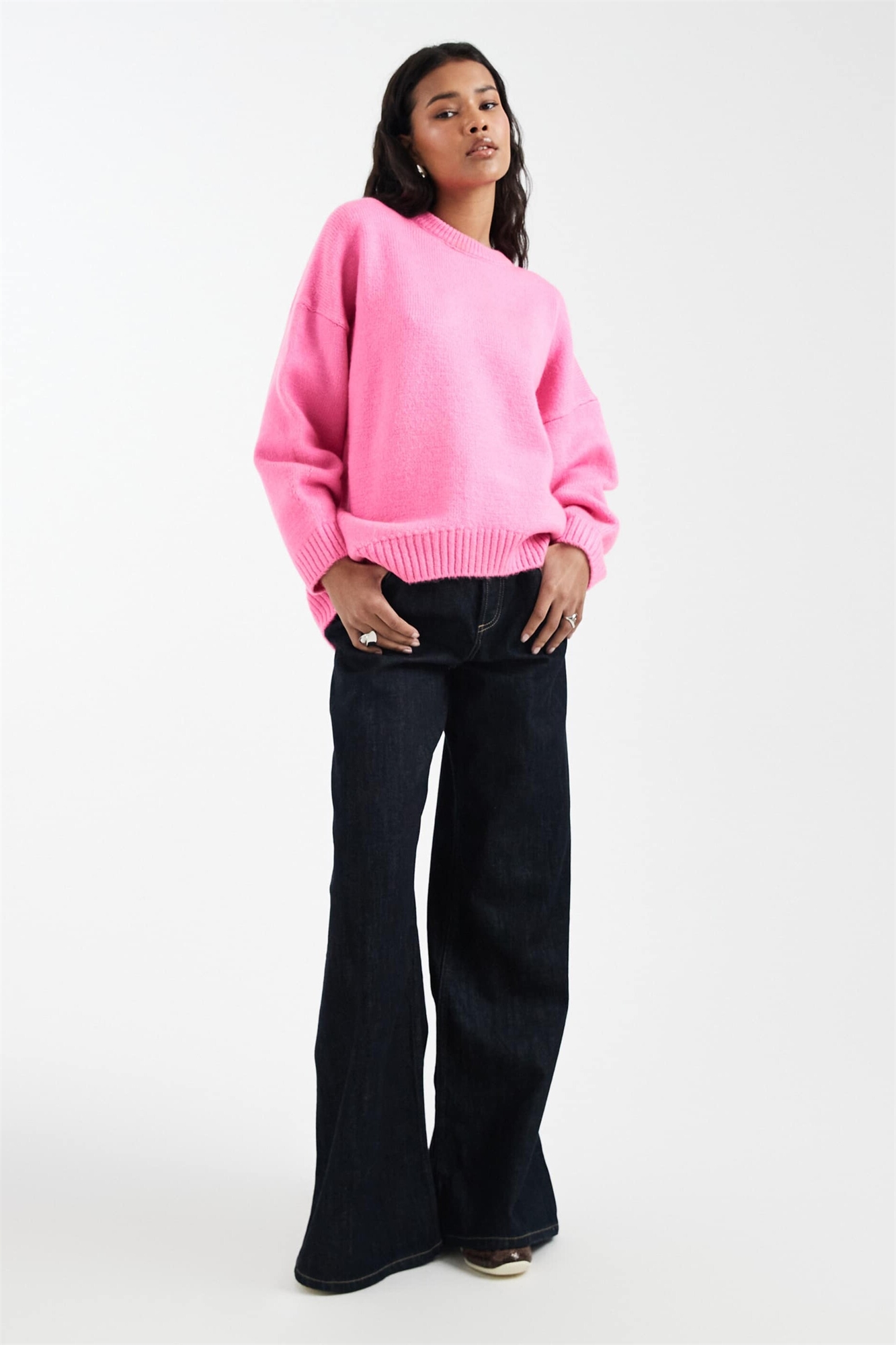 Свободный свитер с круглым вырезом и закругленным низом