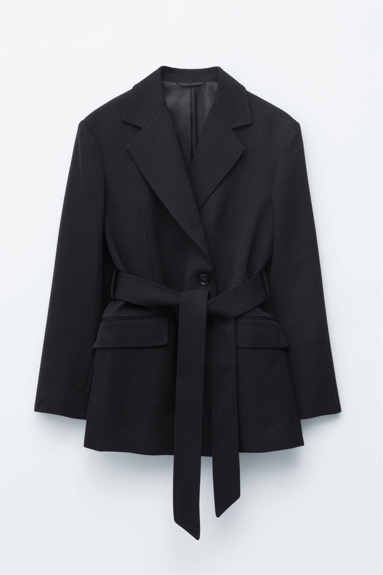 Блейзер с поясом из ткани с высоким содержанием шерсти