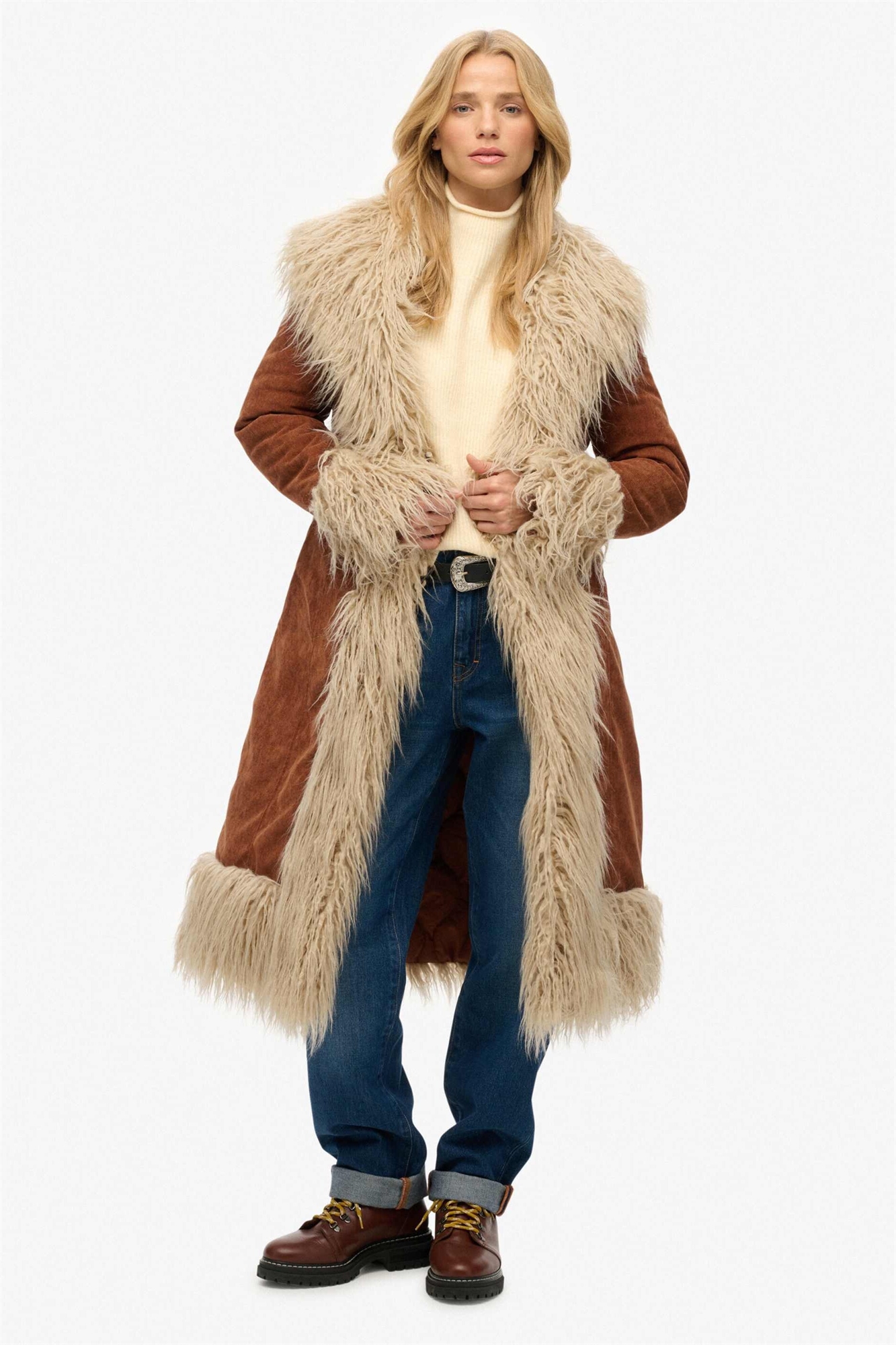 Длинное афганское пальто в стиле рустик, каштаново-коричневого цвета